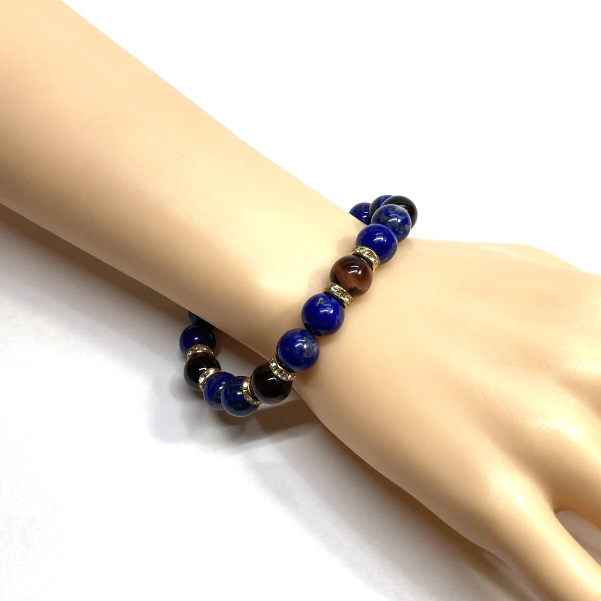 ラピスラズリ&レッドタイガーアイ パワーストーン ブレスレット 天然石ブレス (ゴールド) 10mm メンズ・レディース 金運 ☆