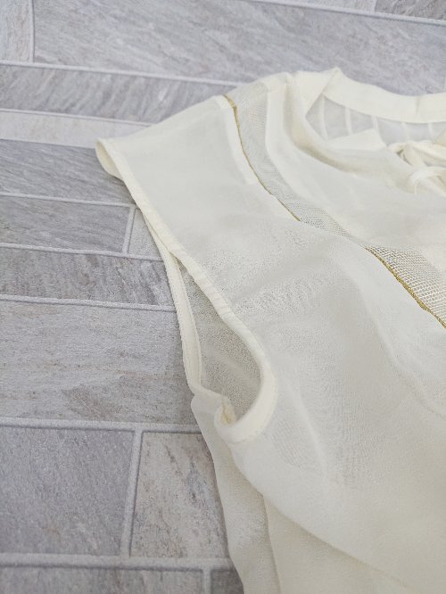 ◇ ノーブランド レース 刺繍 シアー ロング ベスト アイボリー レディース P