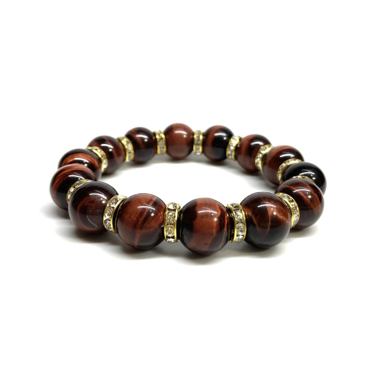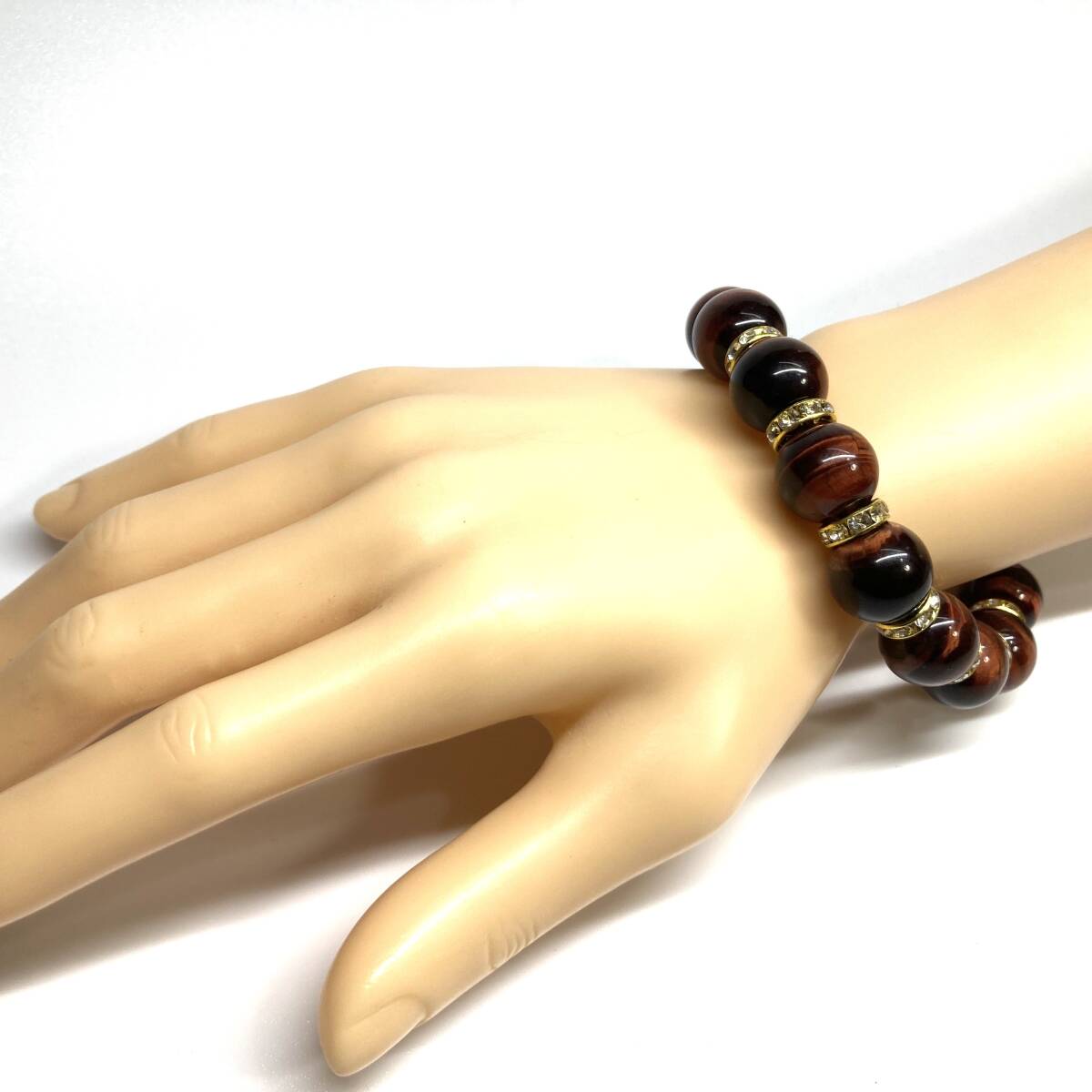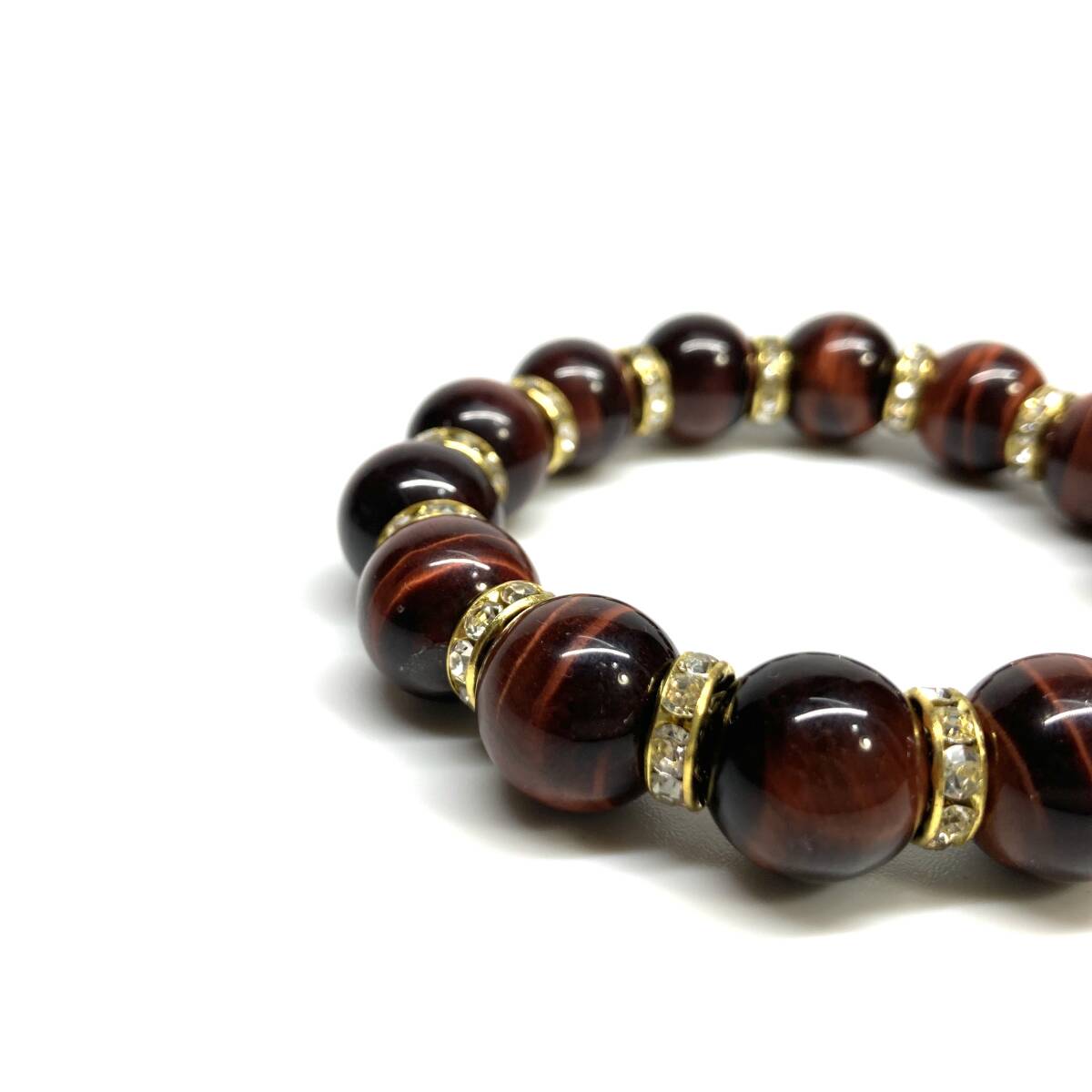 パワーストーン ブレスレット レッドタイガーアイ 14mm 天然石ブレス (ゴールド) 開運 金運 浄化 数珠ブレス メンズ 男性 14ミリ