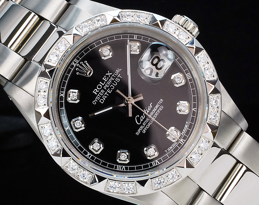 | 文字盤 | ブラック文字盤 10石 天然ダイヤ(リダン(Re Done)、天然アフターダイヤ) |