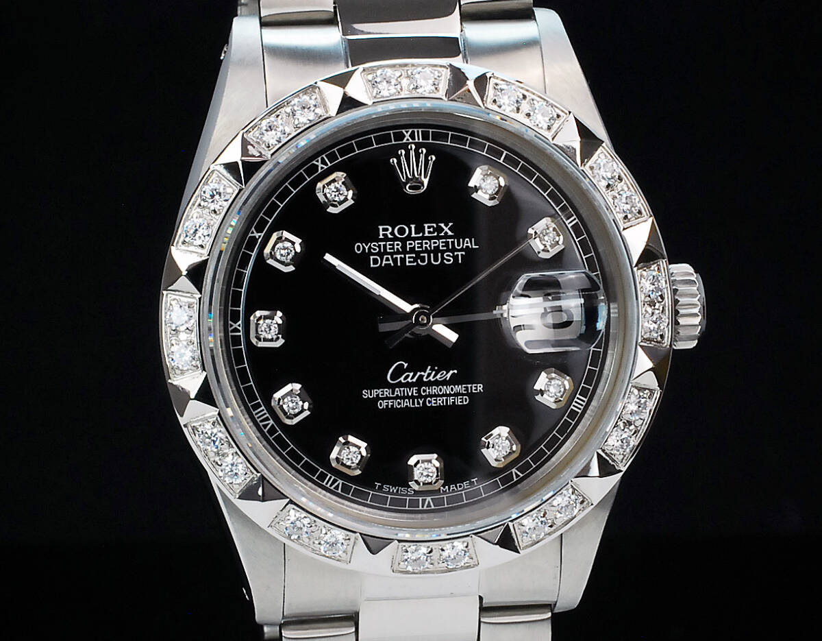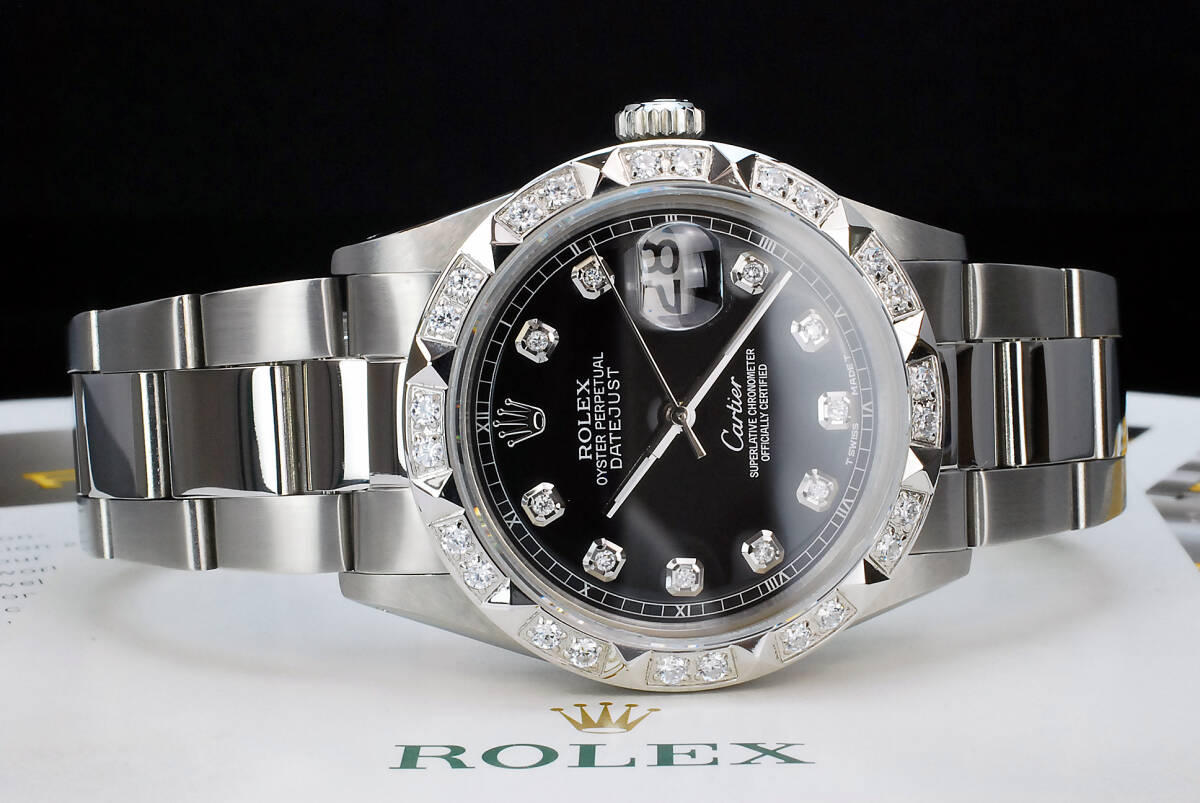 | 極美品【2年/本物保証】OH済 ブラック デイトジャスト 36mm 10P 天然ダイヤ Ref.1601 Cal.1570 サファイアガラス風防 ROLEX OH済 仕上済 メンズ 極美品 24時間内発送 |