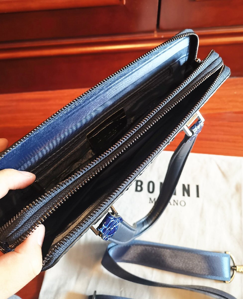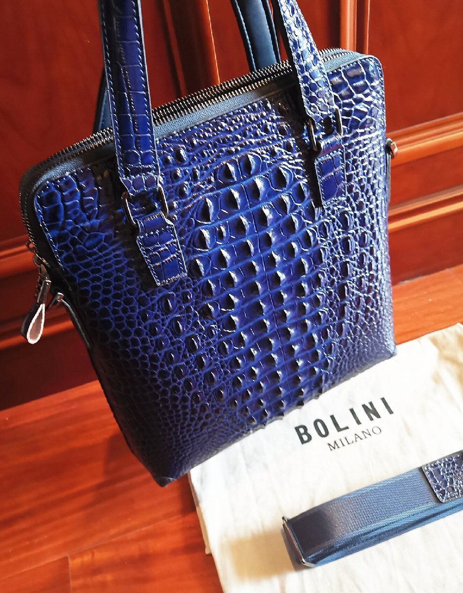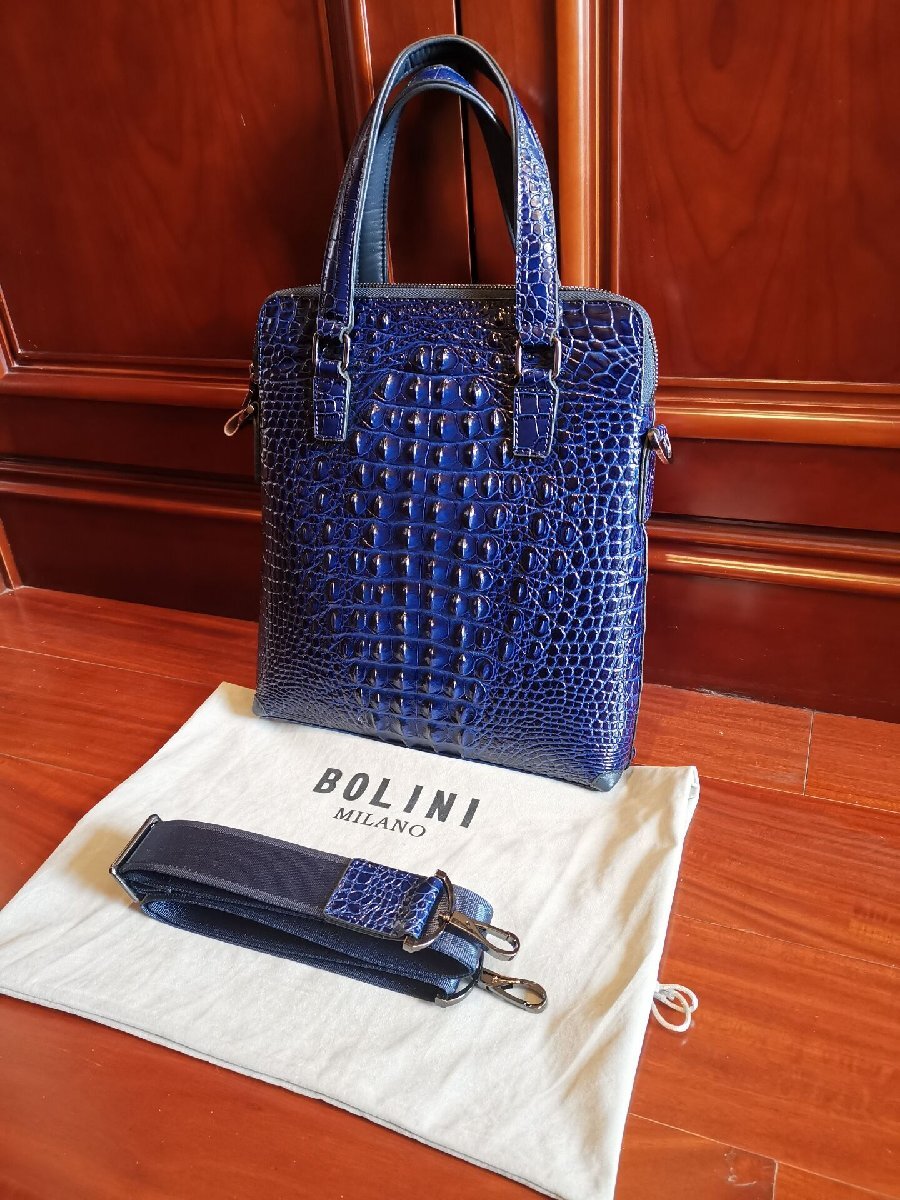 最高峰イタリアミラノ発・ボリニのビジネストートバッグ。 これは本当に素晴らしい傑作です。本体には最上級牛革を使用し上品なクロコダイル型押し仕上げしております。革ライクな表情を持ちながら、長く愛用できる一品。多くのファンから支持されている傑作です。