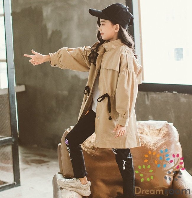 1スタ☆【150cm】スプリングコート ベージュ アウター ジャケット 子供服 女の子 韓国子供服 モッズコート 秋 春物