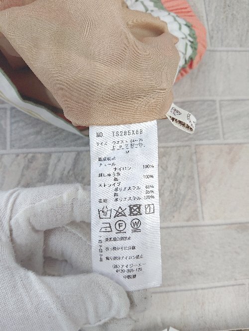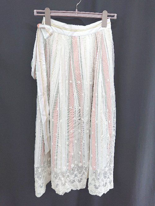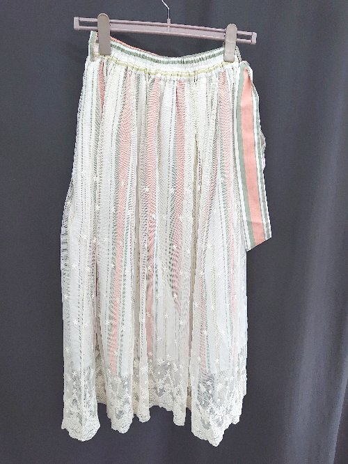 ◇ ⊂ axes femme アクシーズファム ストライプ レース ロング ギャザー スカート サイズM ホワイト系 マルチ レディース E