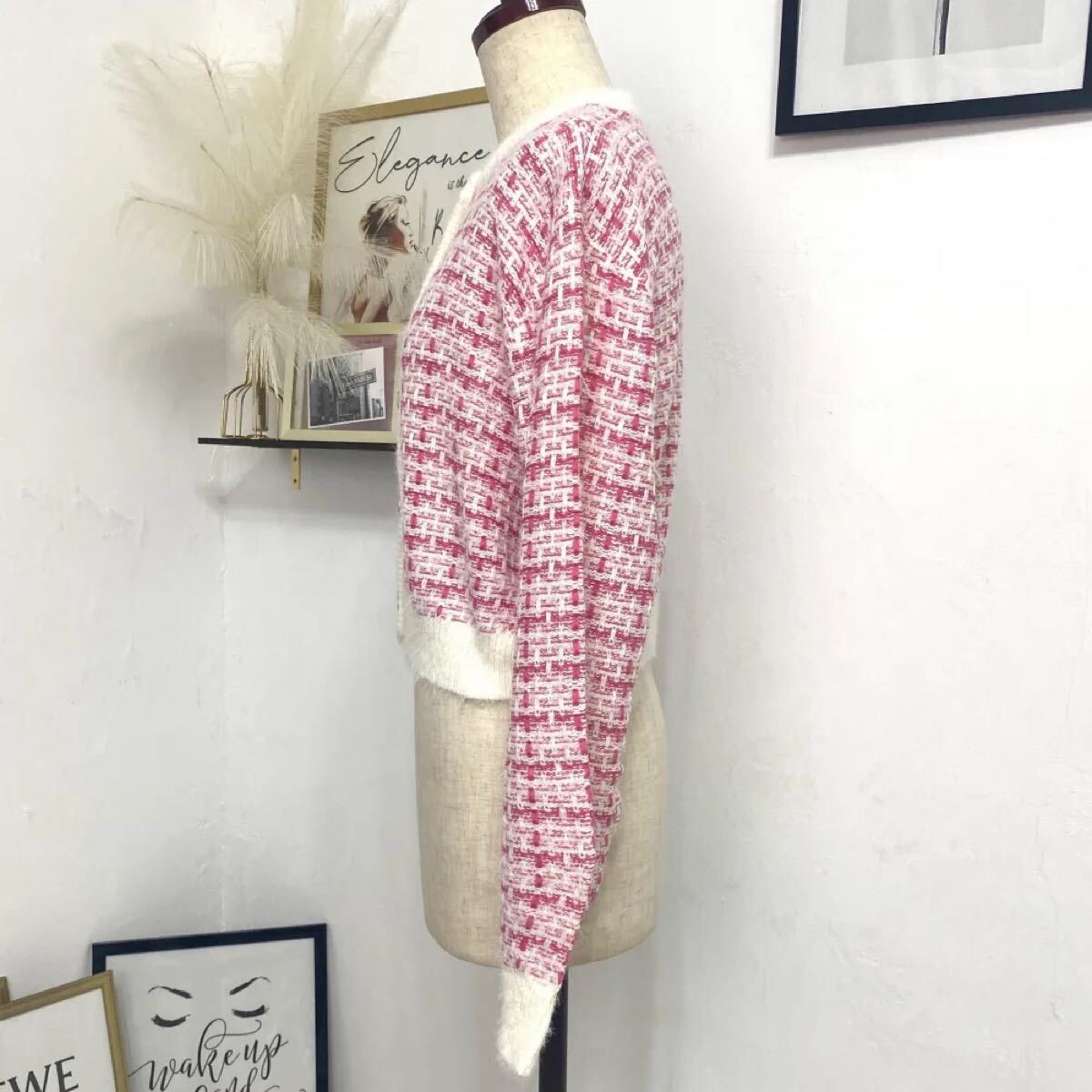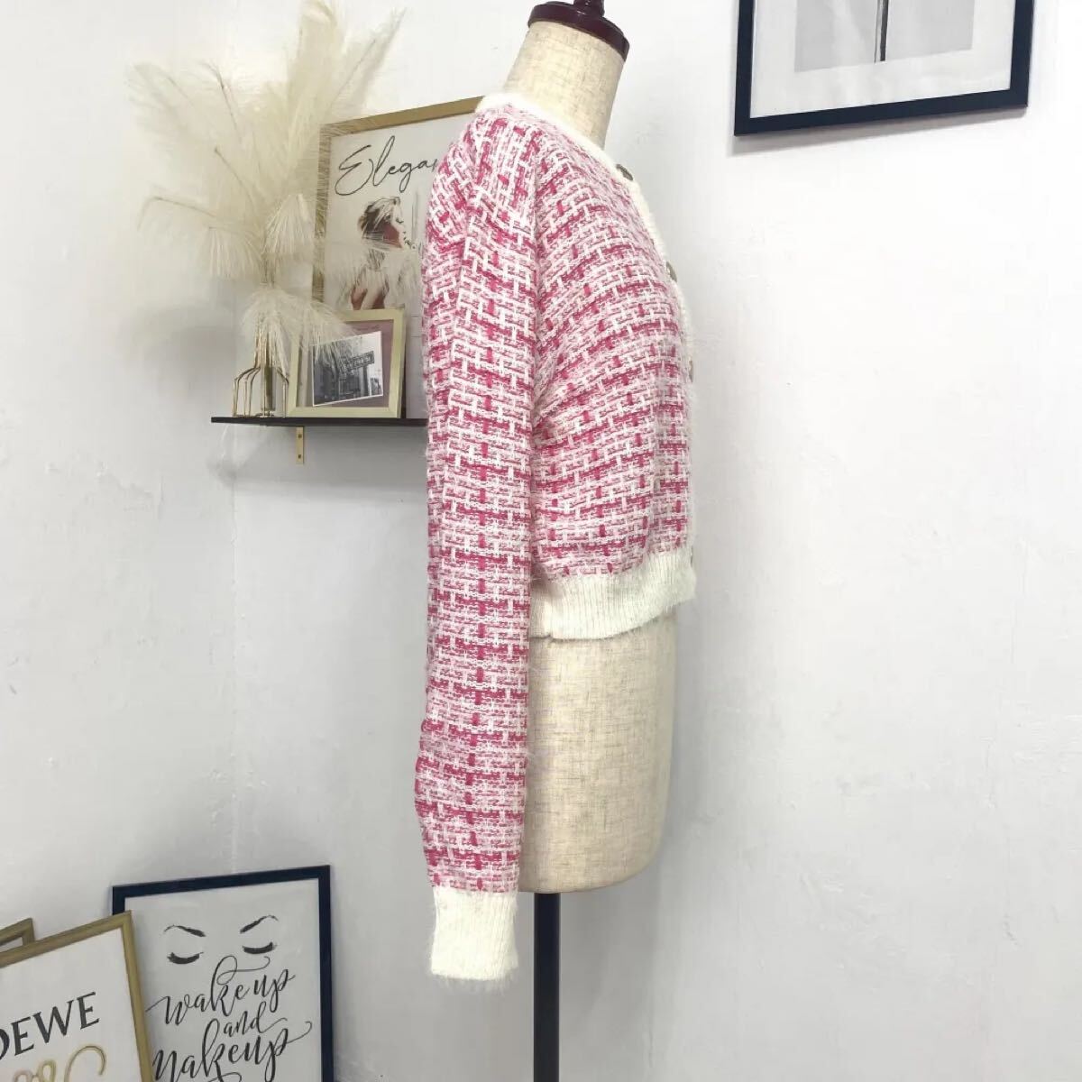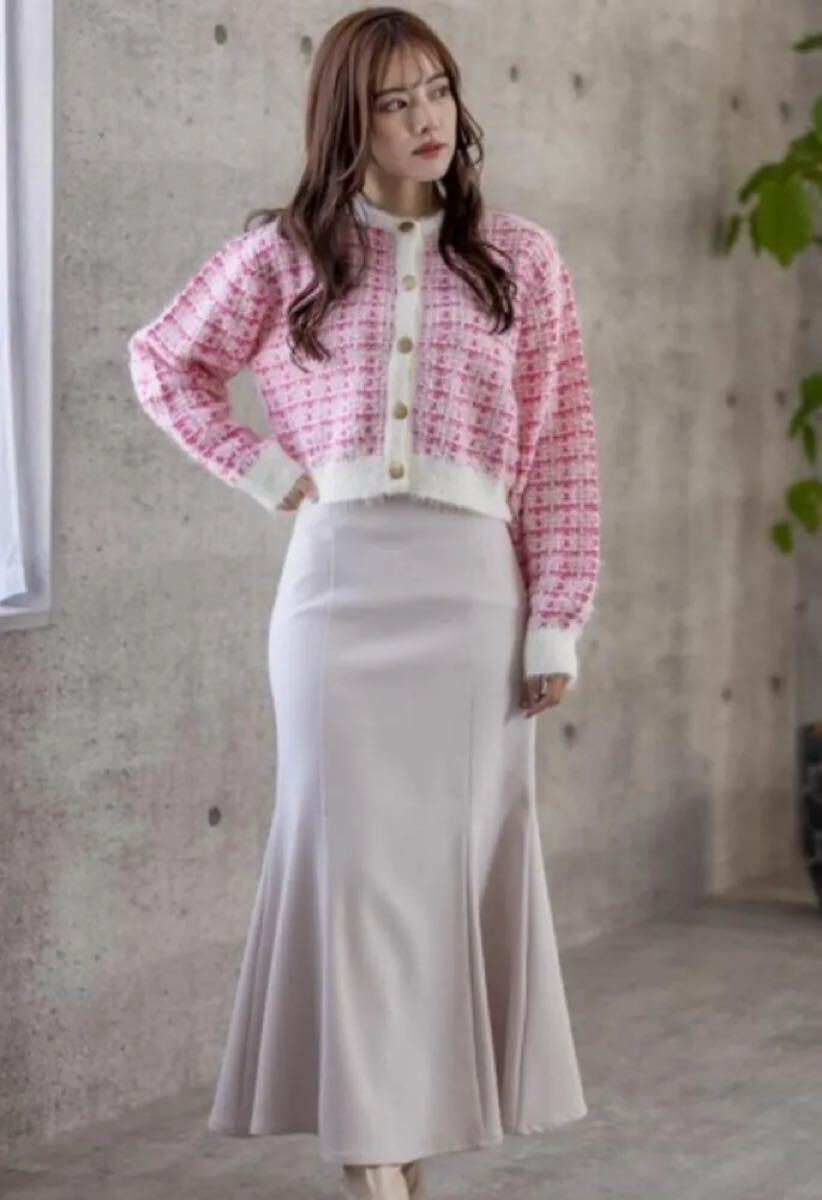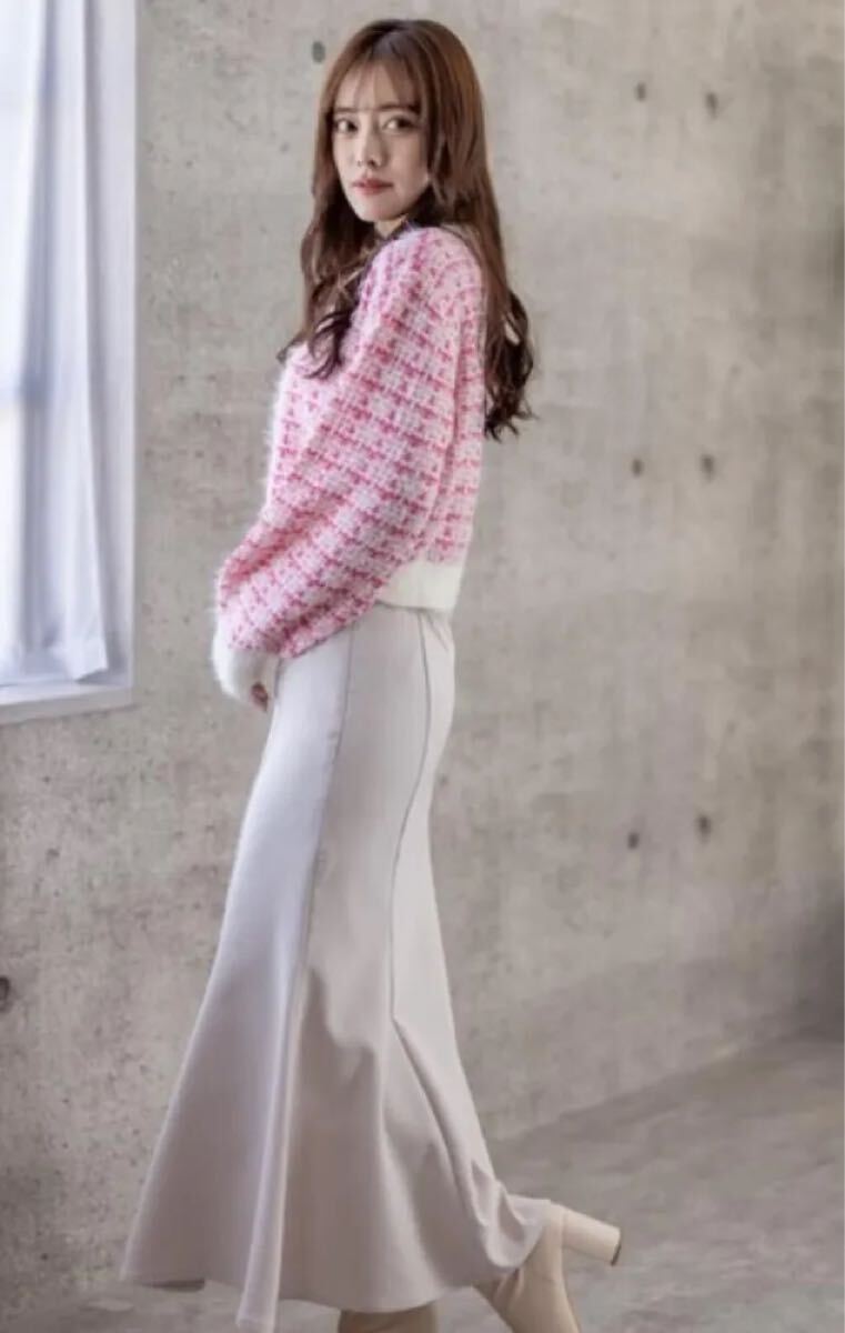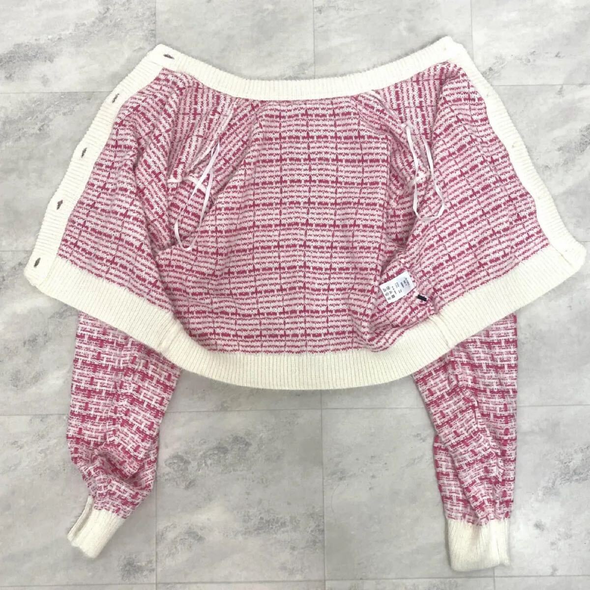 新品 F フェザーツイード ニット カーディガン ピンク トップス アウター