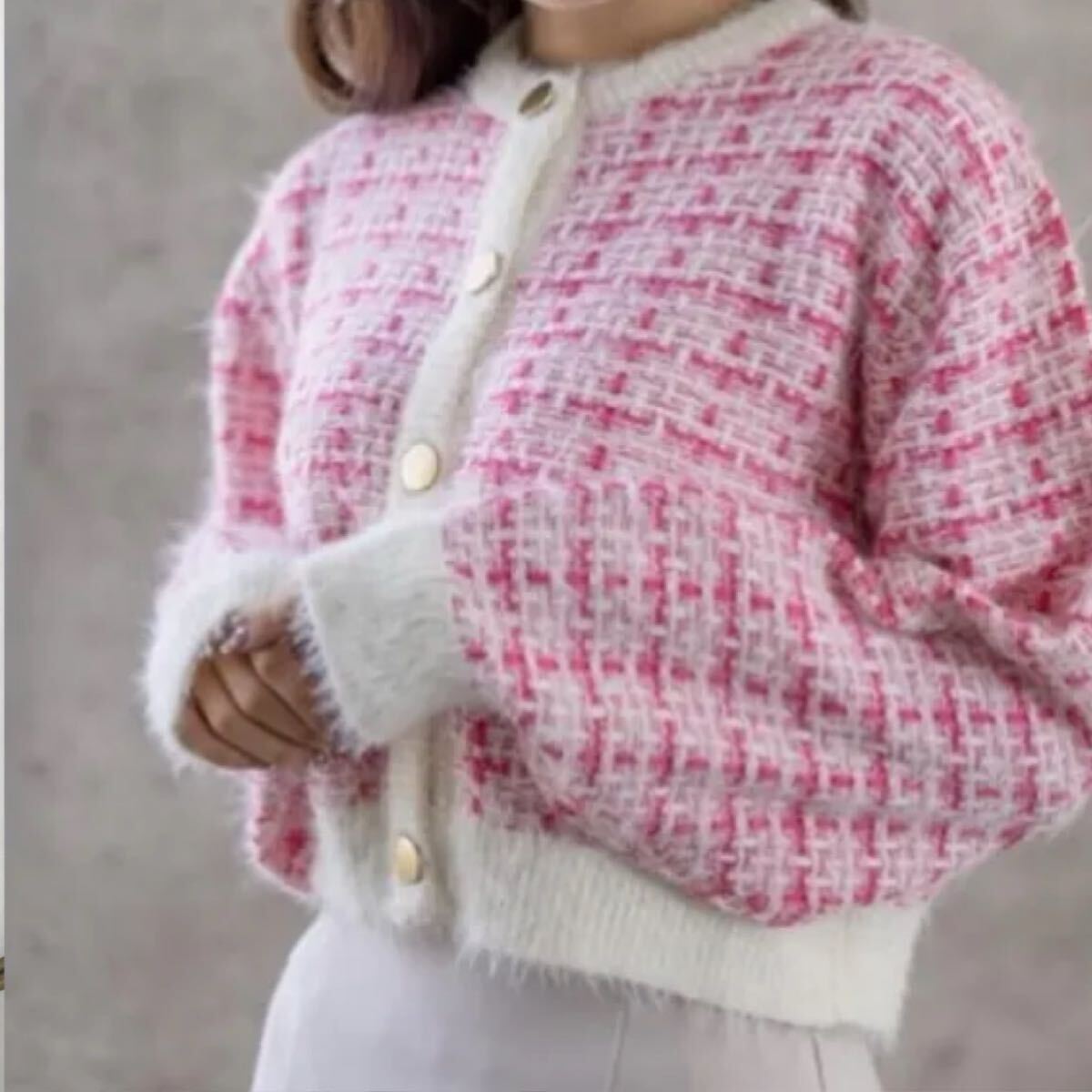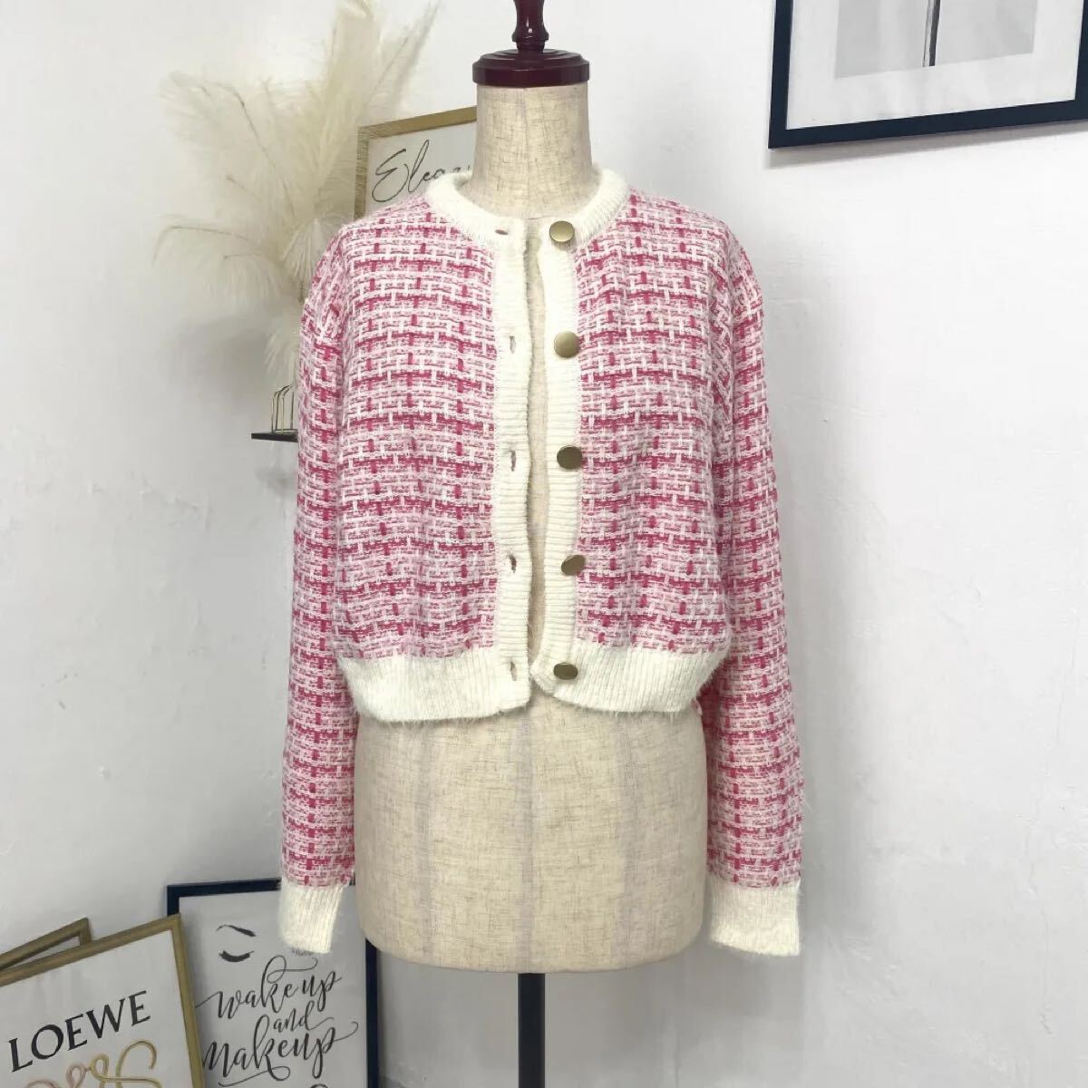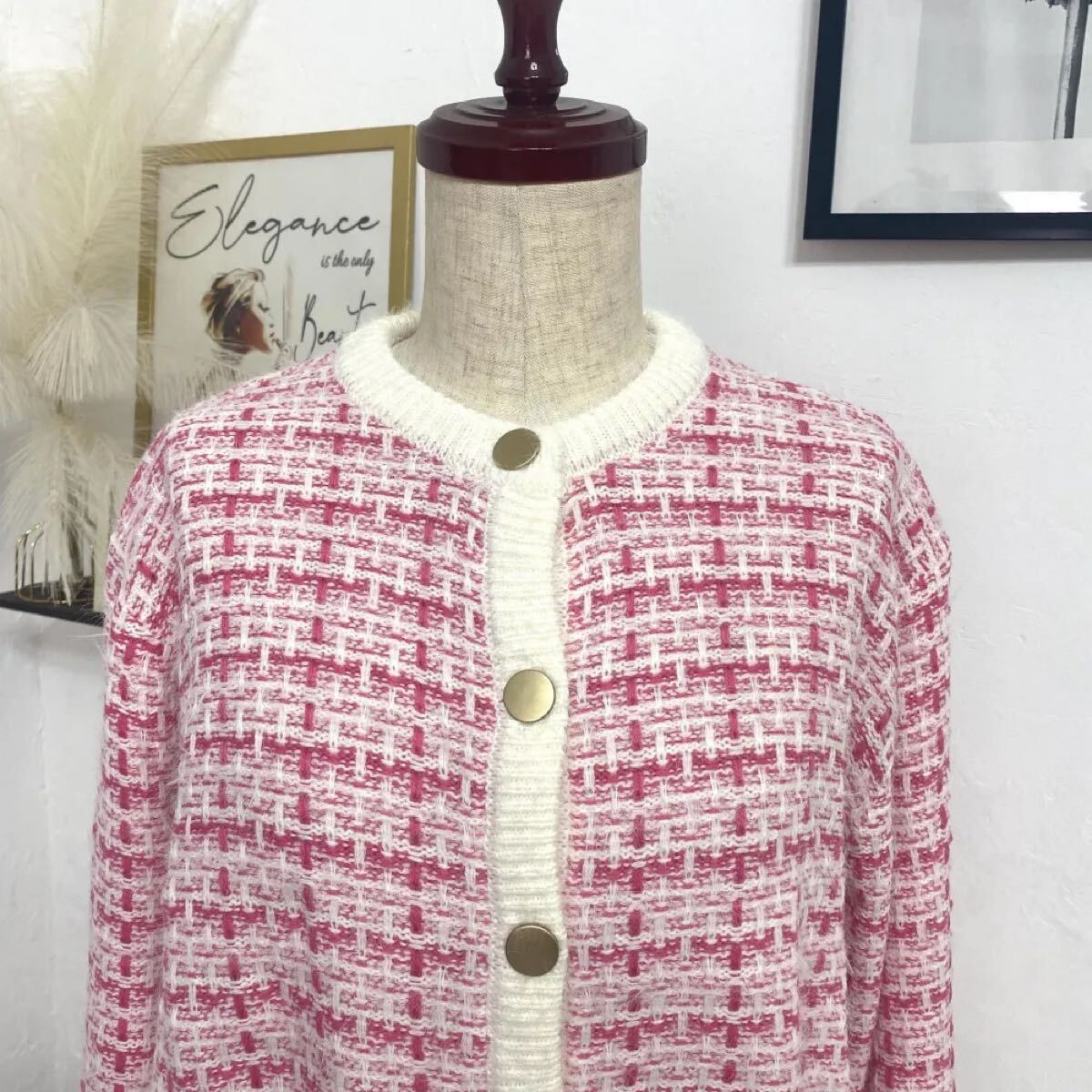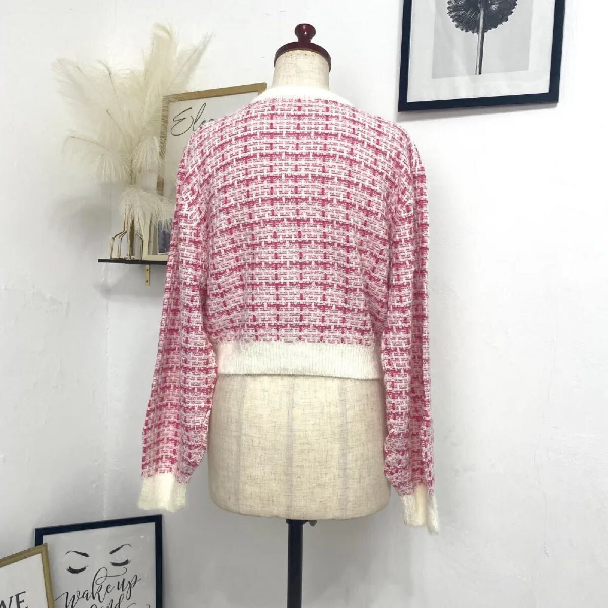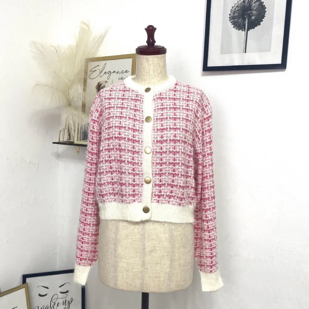 新品 F フェザーツイード ニット カーディガン ピンク トップス アウター