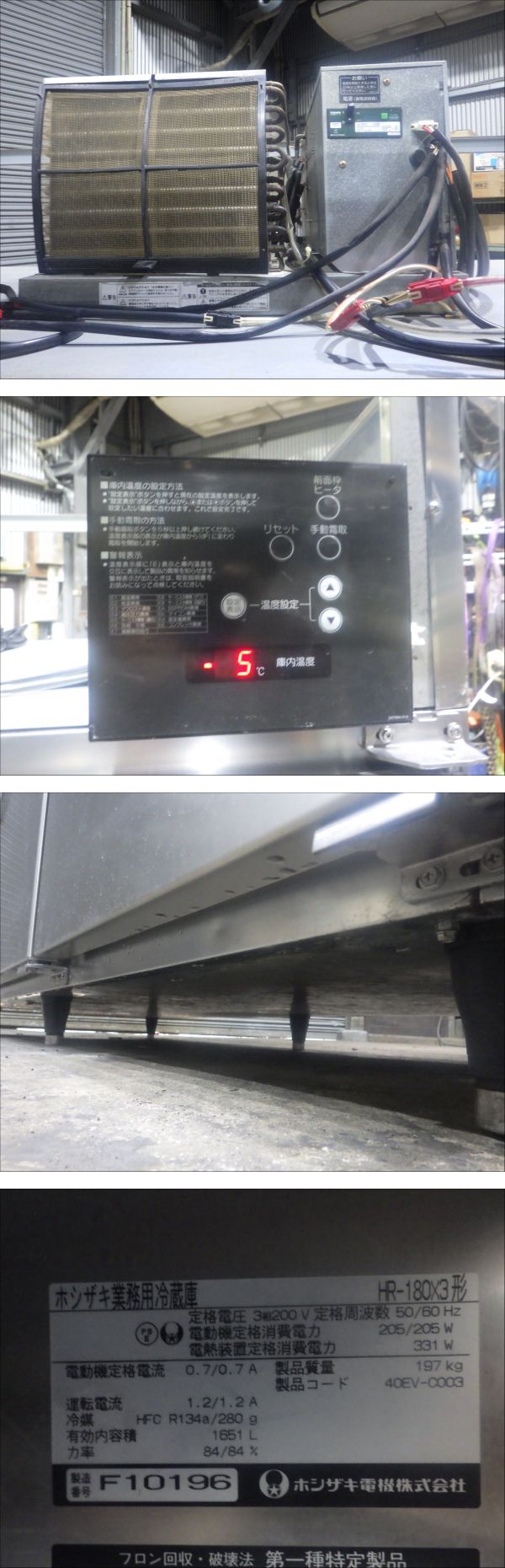 財f3235▼ ホシザキ インバーター 冷蔵庫 HR-180X3 6ドア 業務用冷蔵庫 3相200V 50/60Hz 動作品 1800×800×1890 2006年製 | |||||||||