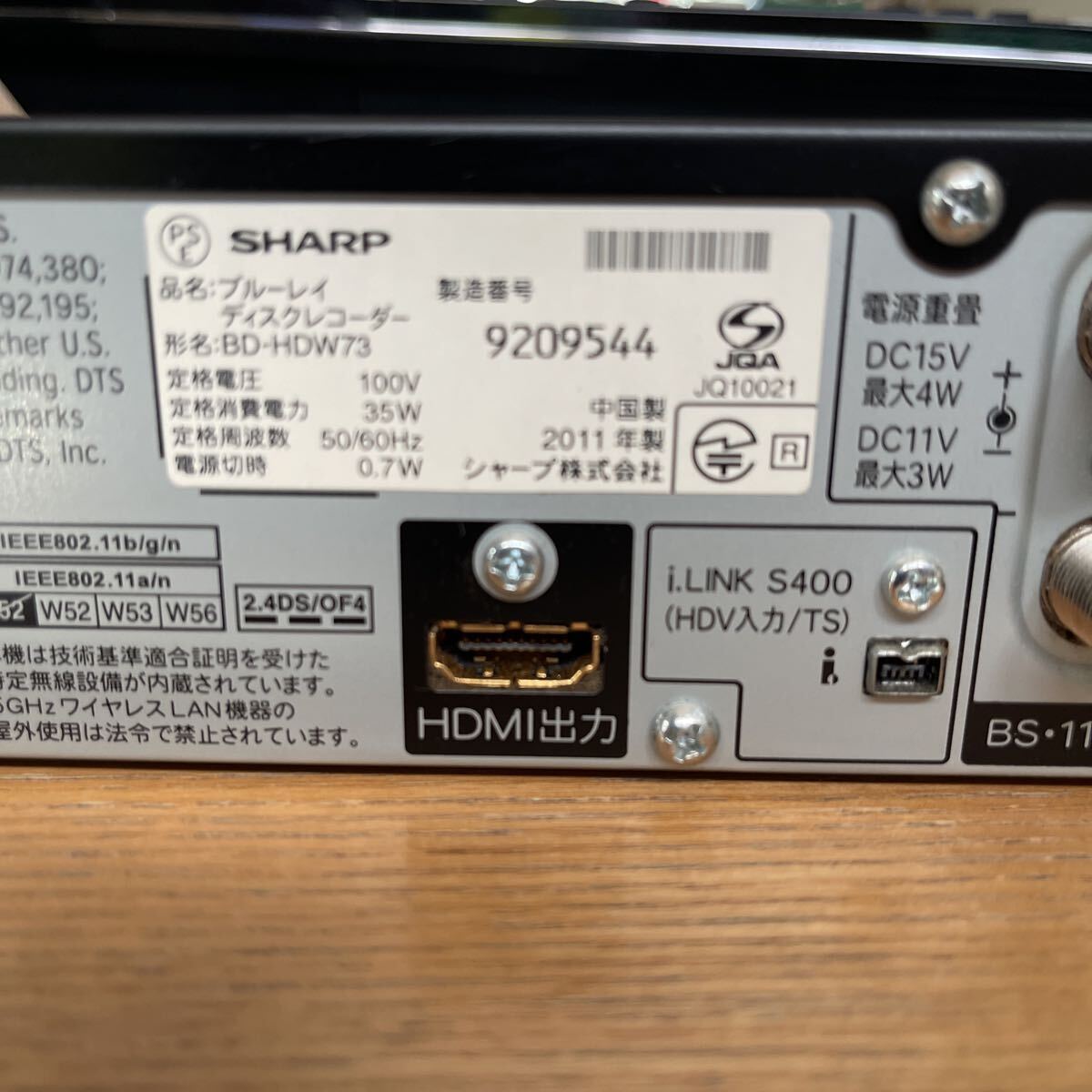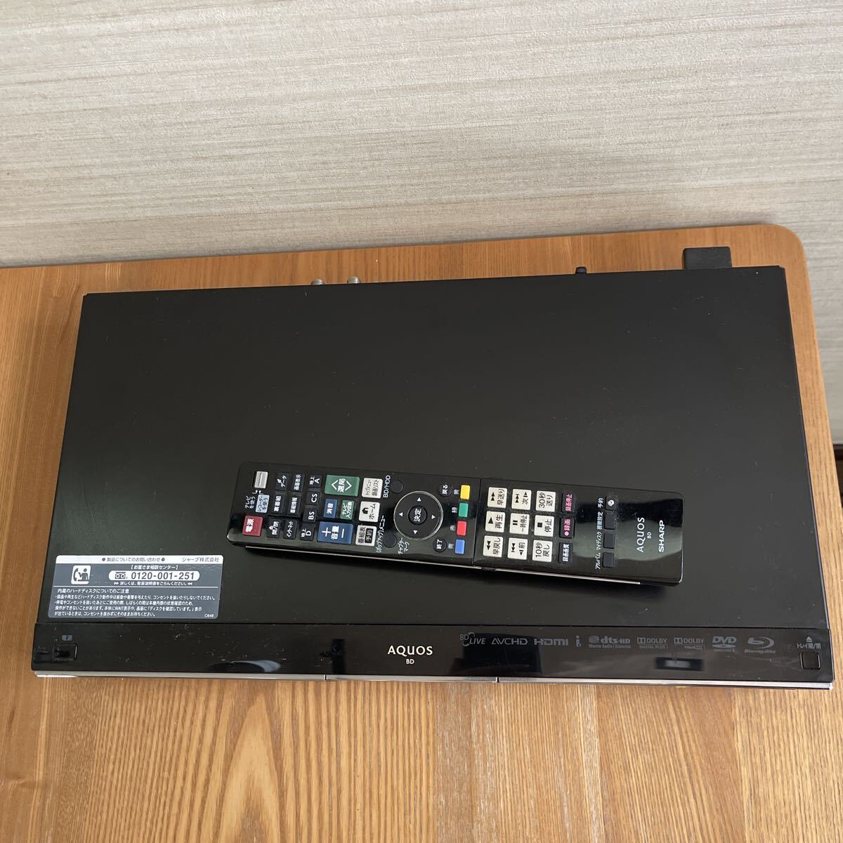 SHARPのブルーレイディスクレコーダーです。