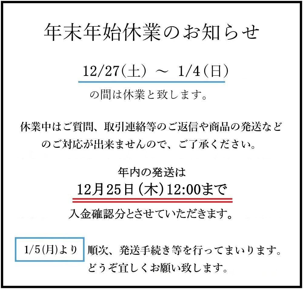 ・商品の発送は入金確認後、3営業日(土日祝を除く)以内での発送となります。