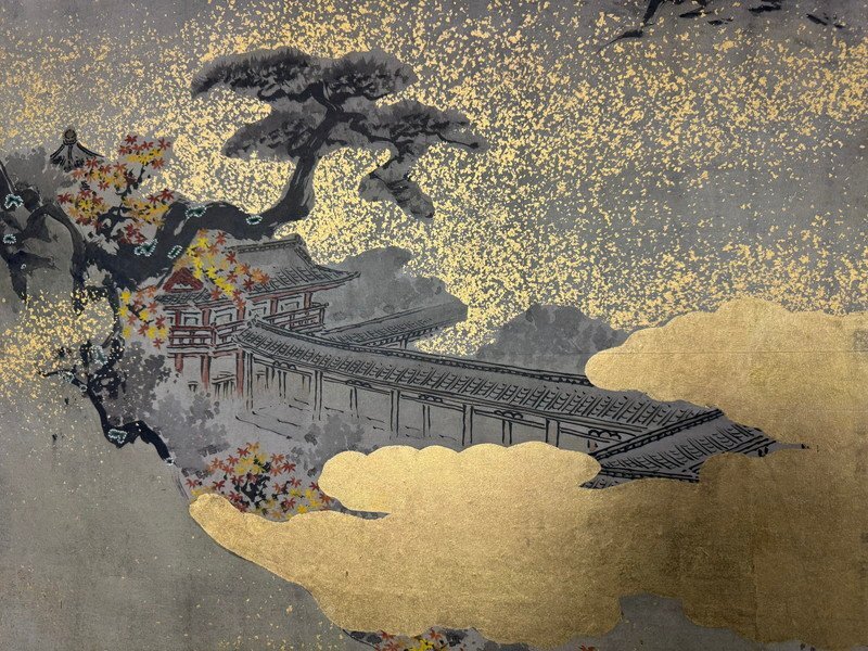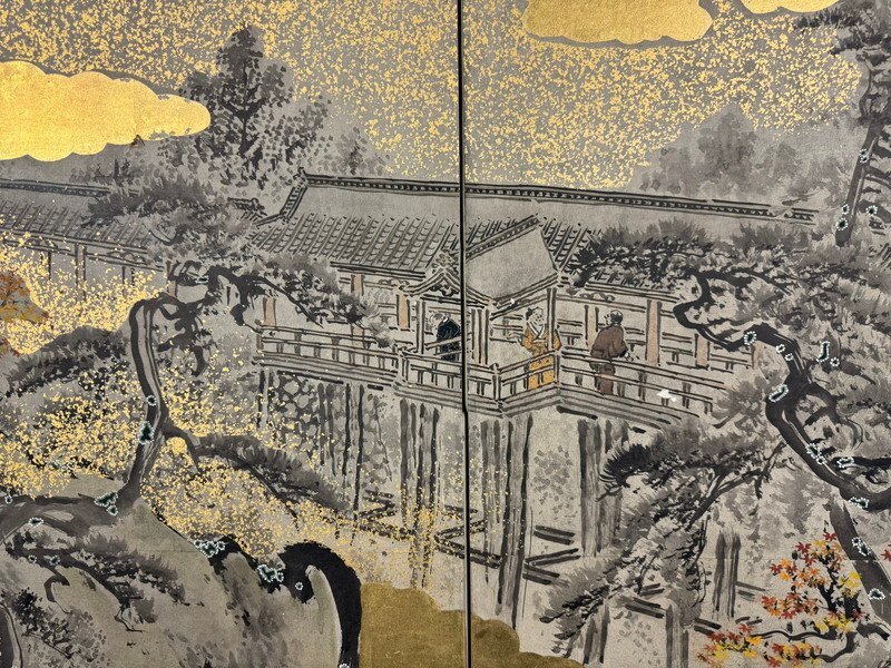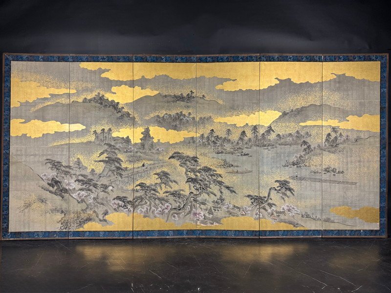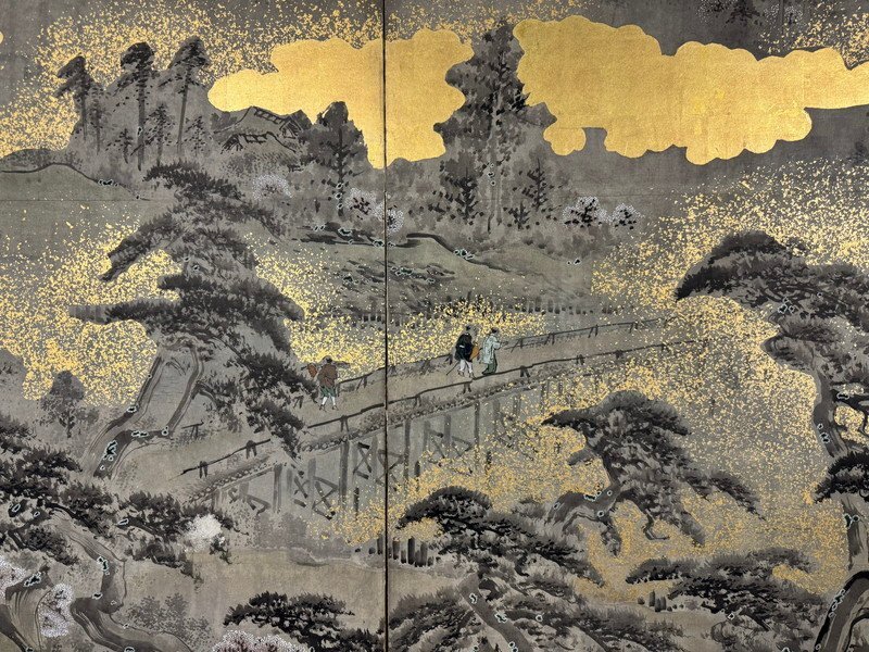 金砂子 嵐山渡月橋東福寺通天橋図 屏風 六曲一双