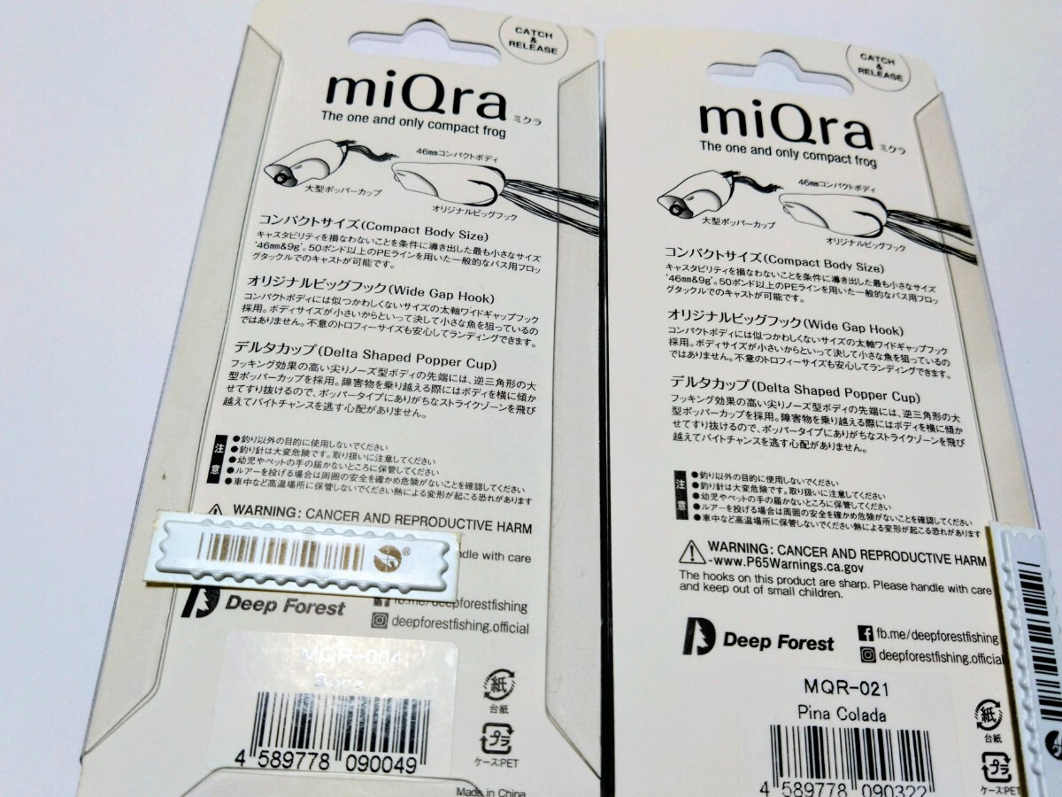 新品未開封自宅保存していました。ディープフォレストミクラコンパクトフロッグMQR−004ボーンカラー46mm9g.MQR−021ピニァコラーダ.2点セットよろしくお願いします。