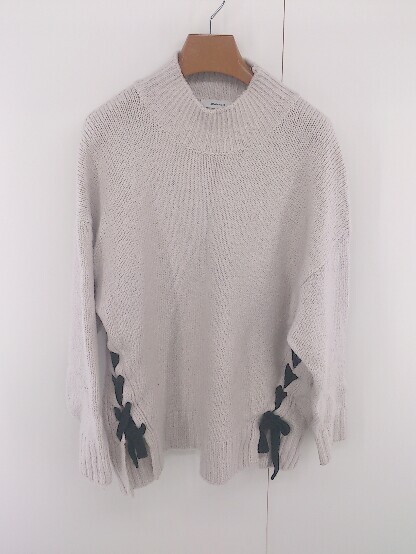 ◇ JEANASIS ジーナシス ハイネック リボン 可愛い 長袖 ニット セーター サイズF グレージュ系 レディース E