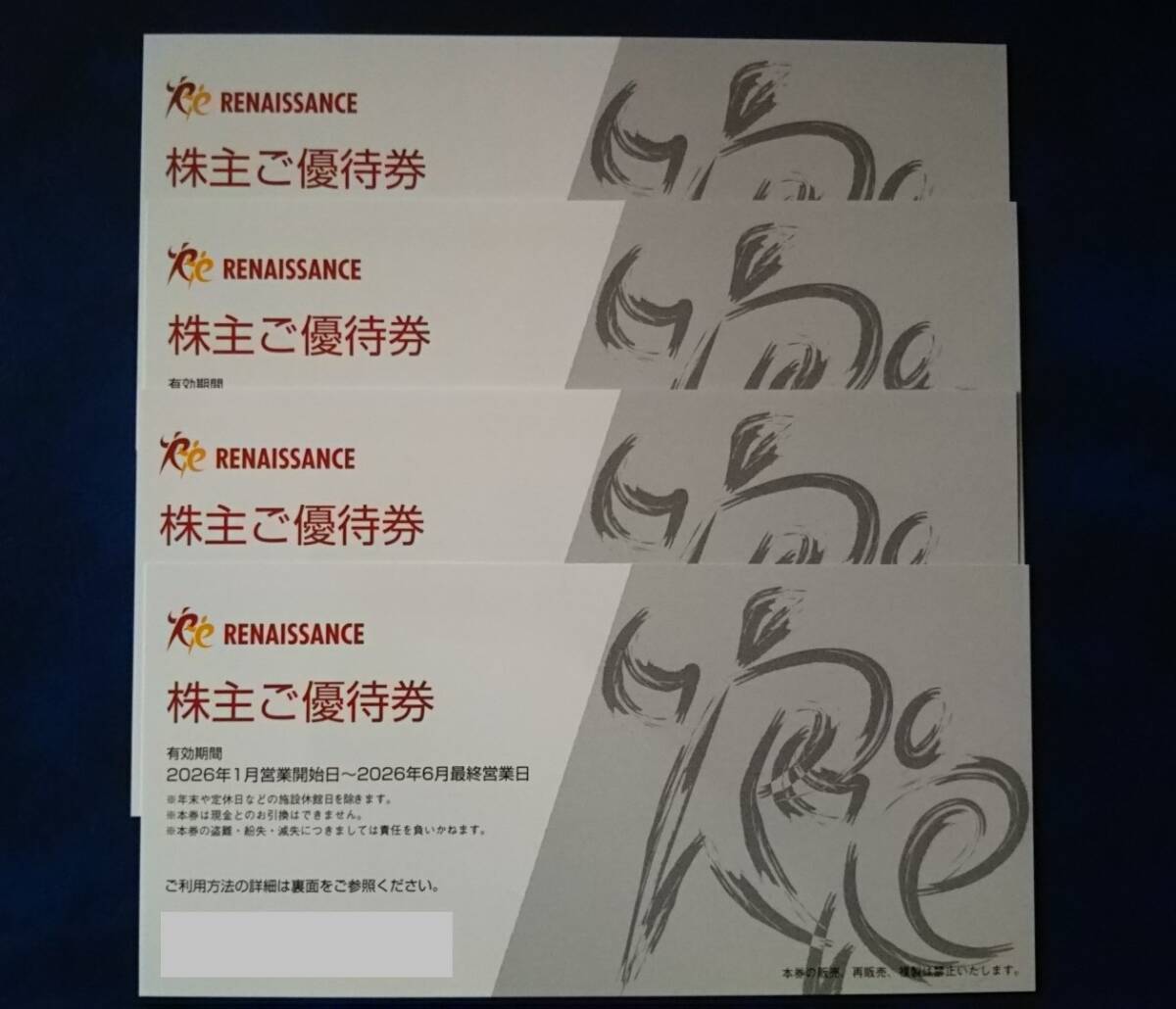 最新★2026年6月最終営業日まで★ ルネサンス 株主優待券 4枚セット