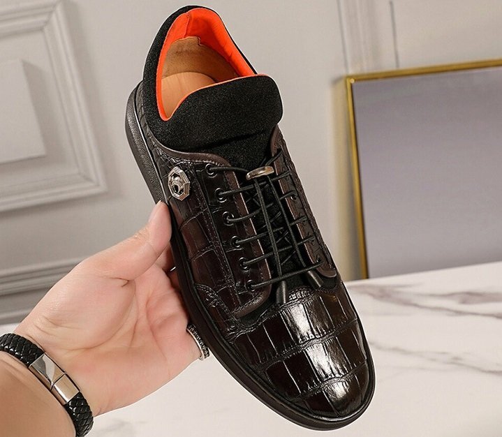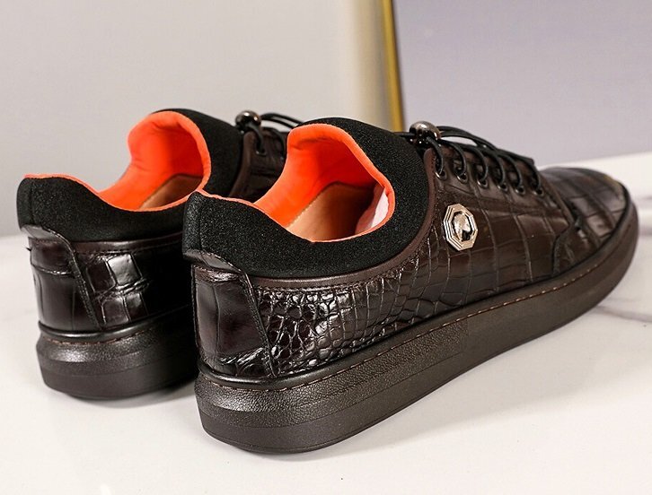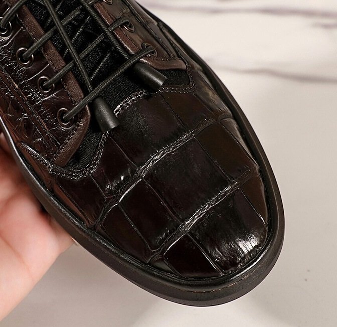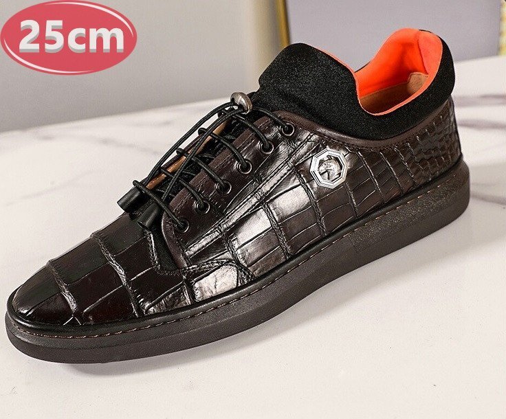 クロコダイルレザー スニーカー 最高級 ワニ革 クロコダイル 靴 メンズシューズ 革靴 ダークブラウン 25.0cm 【n790】