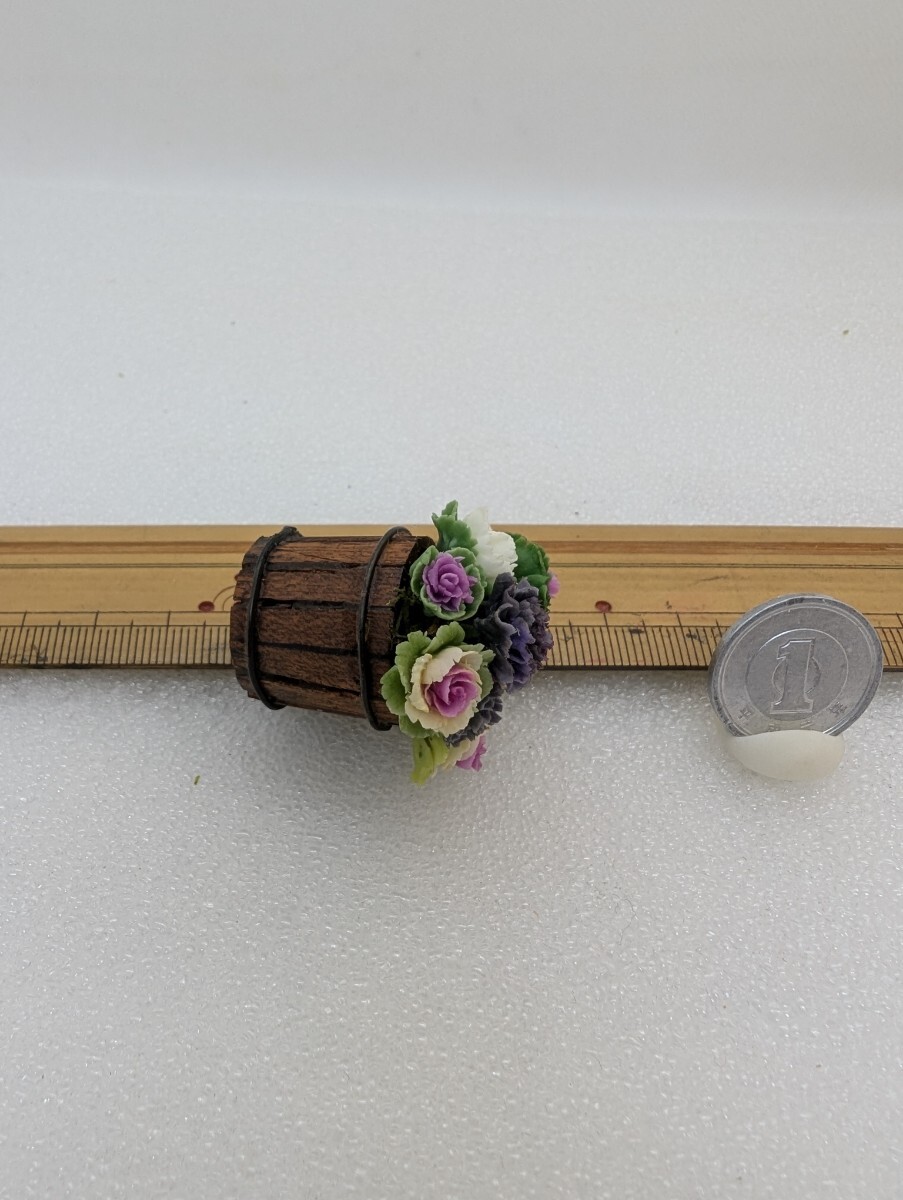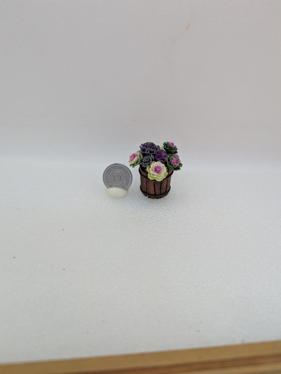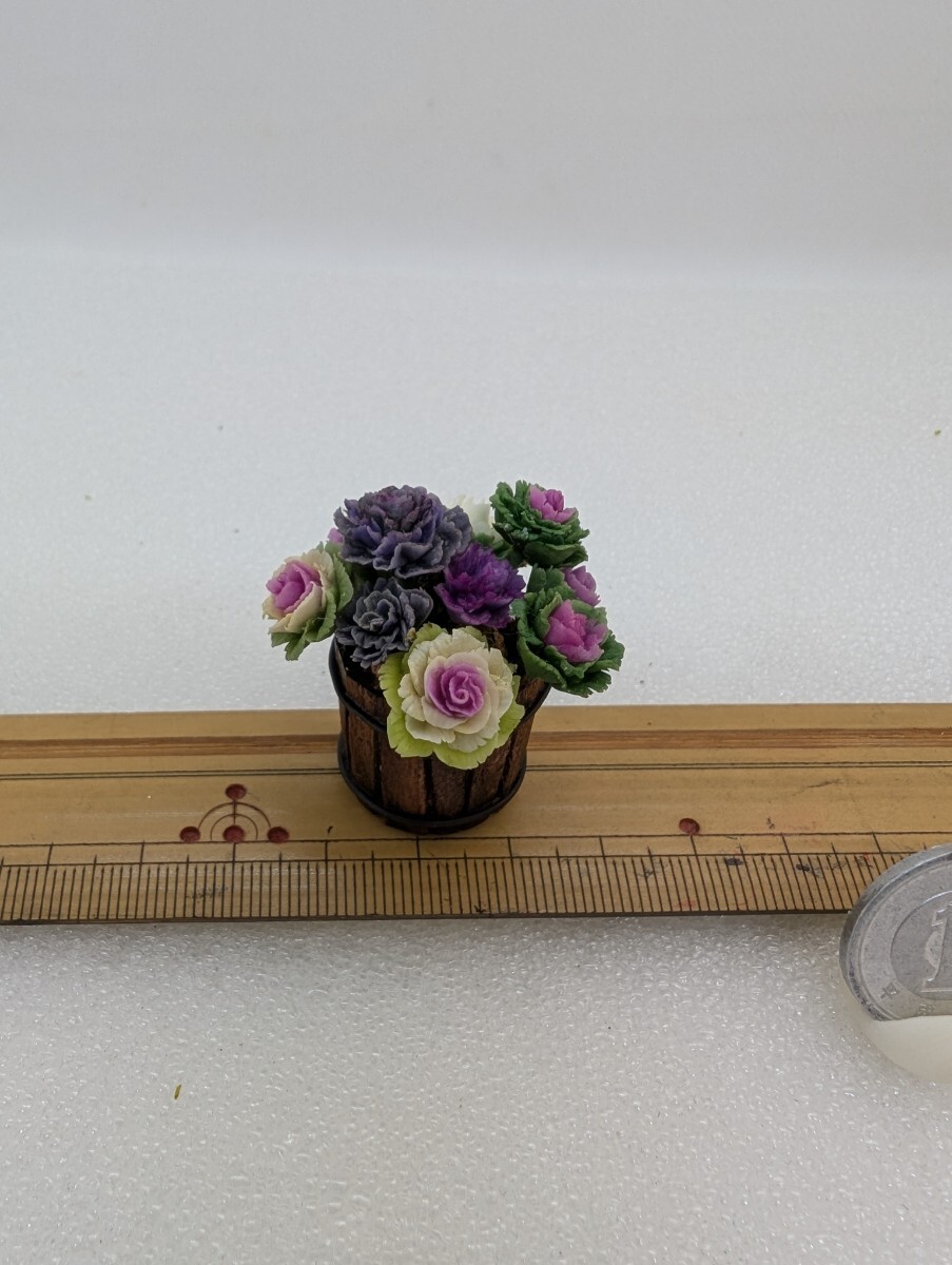 樹脂粘土でいろんな葉牡丹を作り、手作りのプランターに植えました。