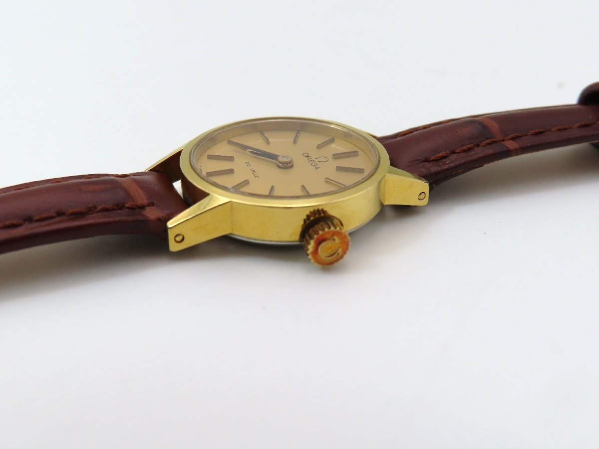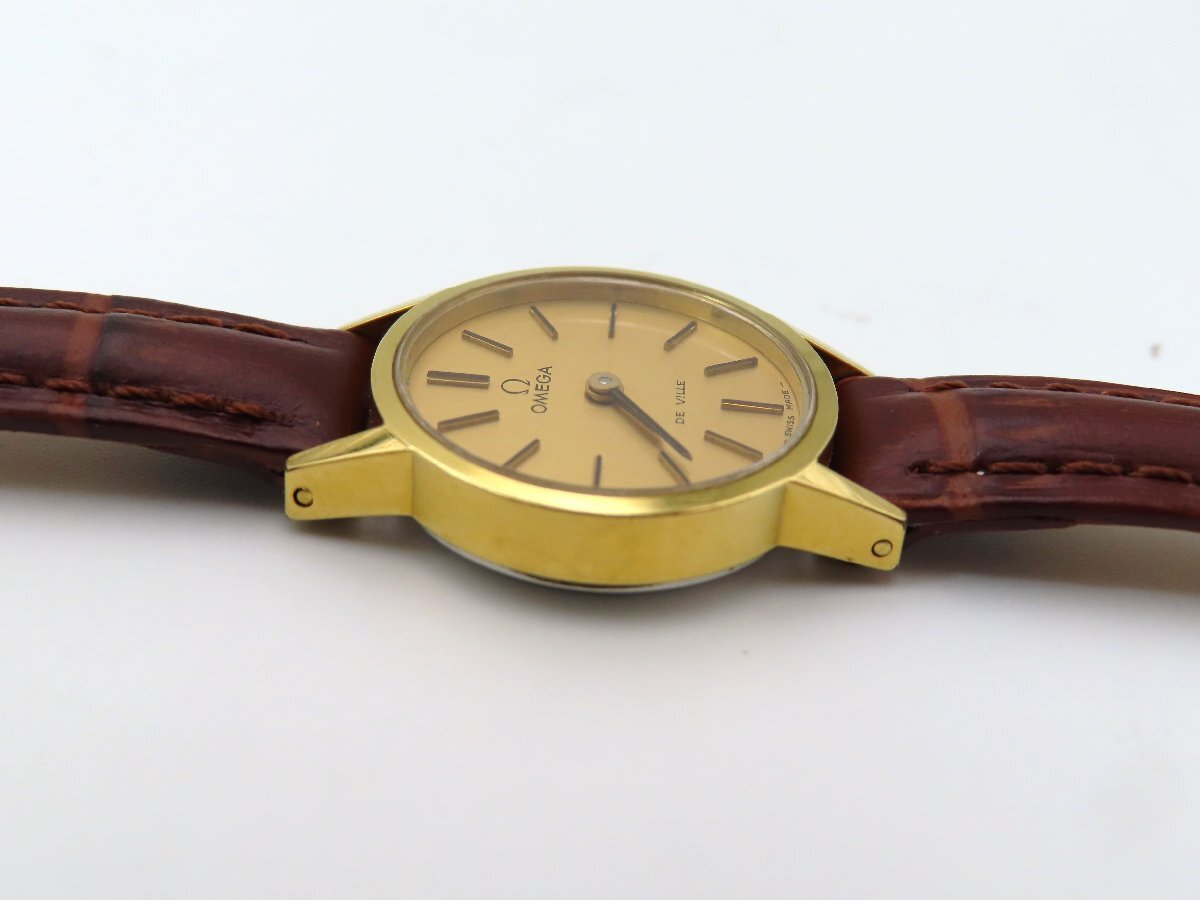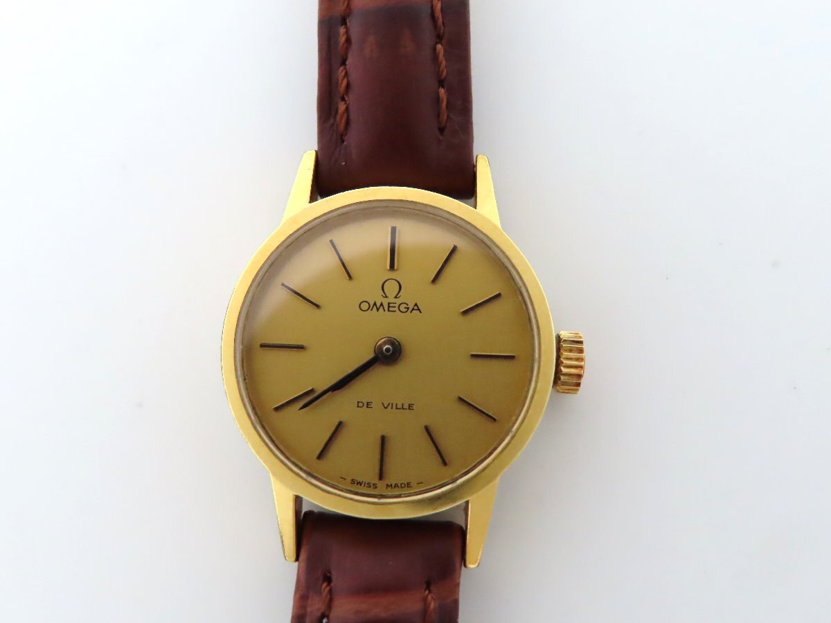 1円 オメガ デヴィル GP/革 シャンパン文字盤 レディース 稼働 手巻 29827 LERL