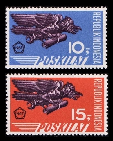 la255y3-2i インドネシア1967年 特別扱切手 ガルーダ 2枚完