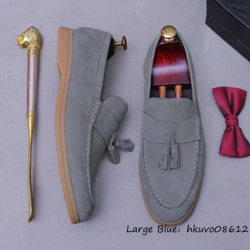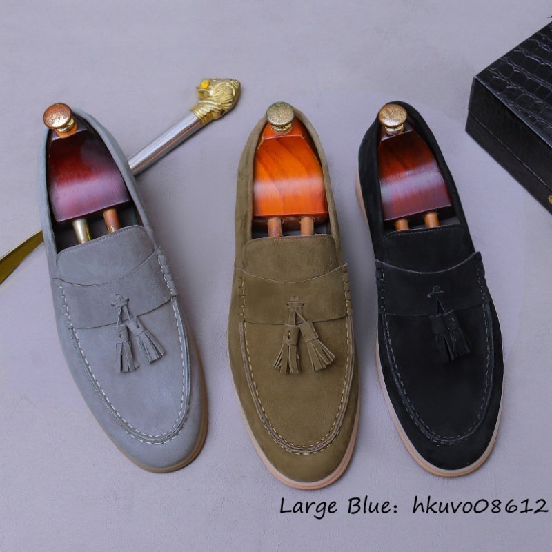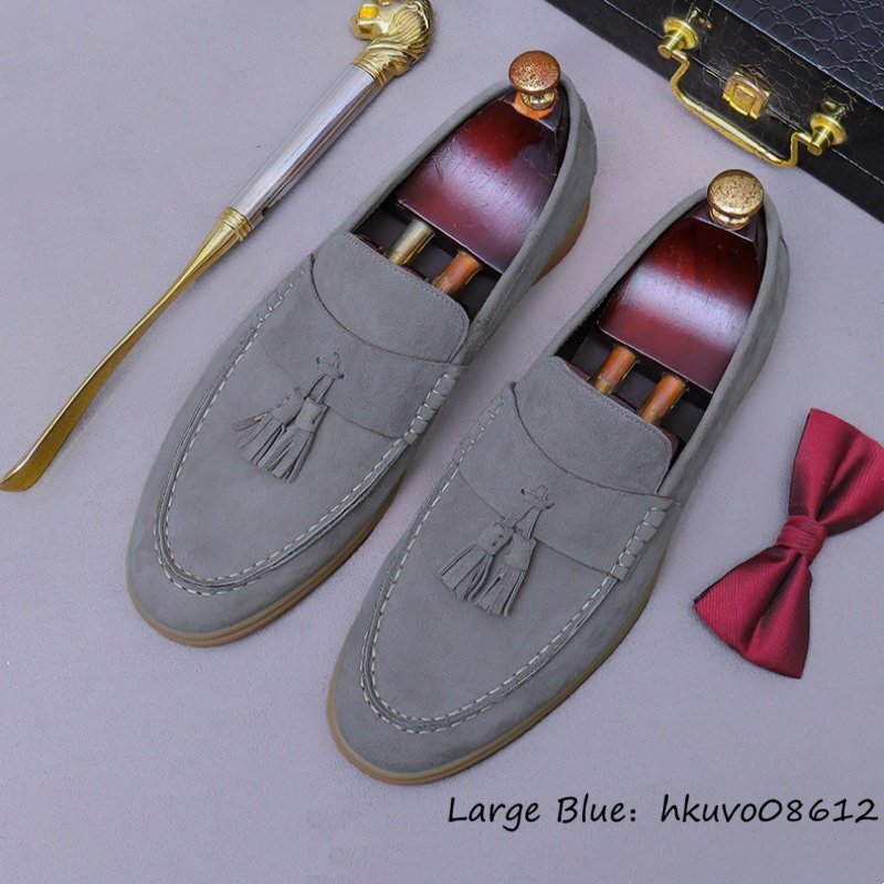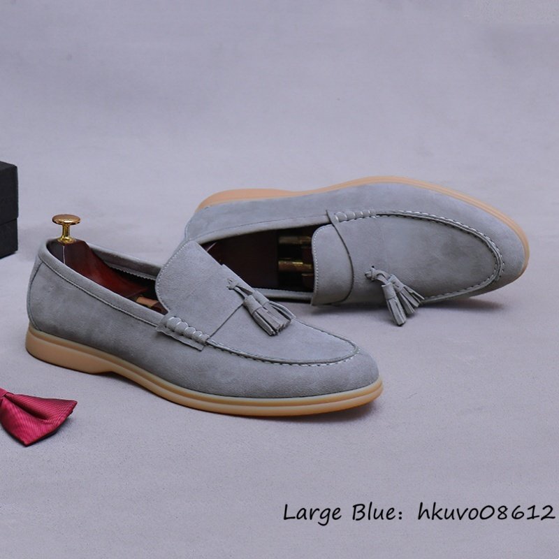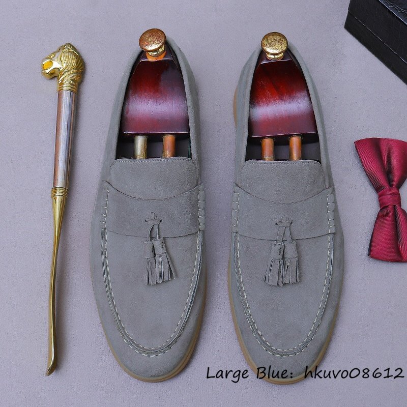超希少■ローファー スリッポン スエード革 ドライビングシューズ 職人手作り ビジネスシューズ 紳士靴 タッセル 本革革靴 グレー 25.5cm