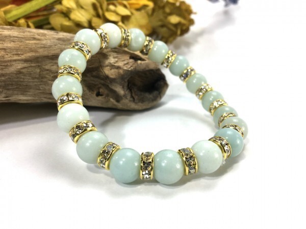 こちらは、10mm玉のアマゾナイトを使用したパワーストーンブレスレットです。間にはロンデルを挟み高級感あるブレスレットに仕上げています。石大きさは腕にも馴染みやすいように10mm玉を使用して、サイズは内径約18cmです。(サイズ調節も無料で承っています。サイズ変更の場合は落札後、取引ナビにてご一報くださいませ。) 数に限りがございますので気になる方はお早めにどうぞ。