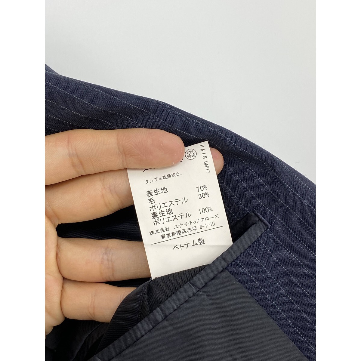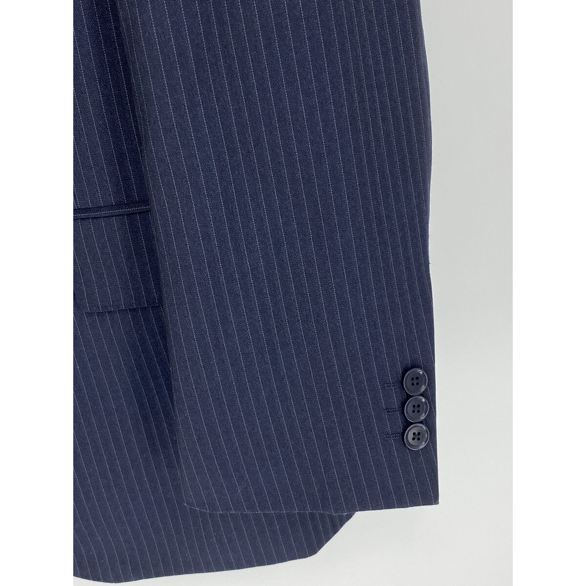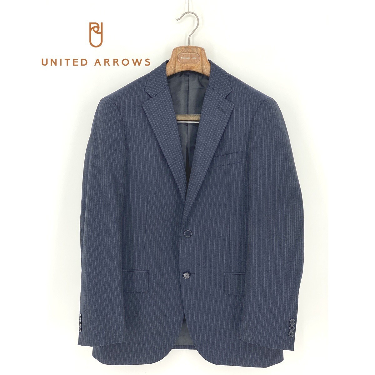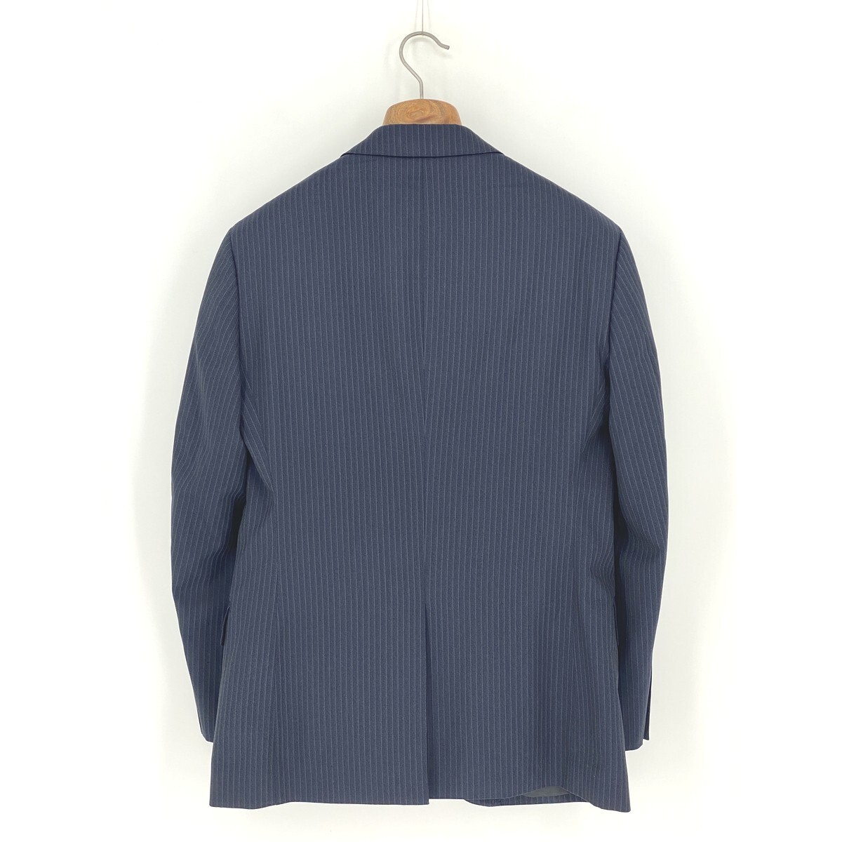 B0620/極美品 総裏 UNITED ARROWS ユナイテッドアローズ ウール ストライプ テーラード シングル2Bジャケット46 M 濃紺 メンズ スーツ用