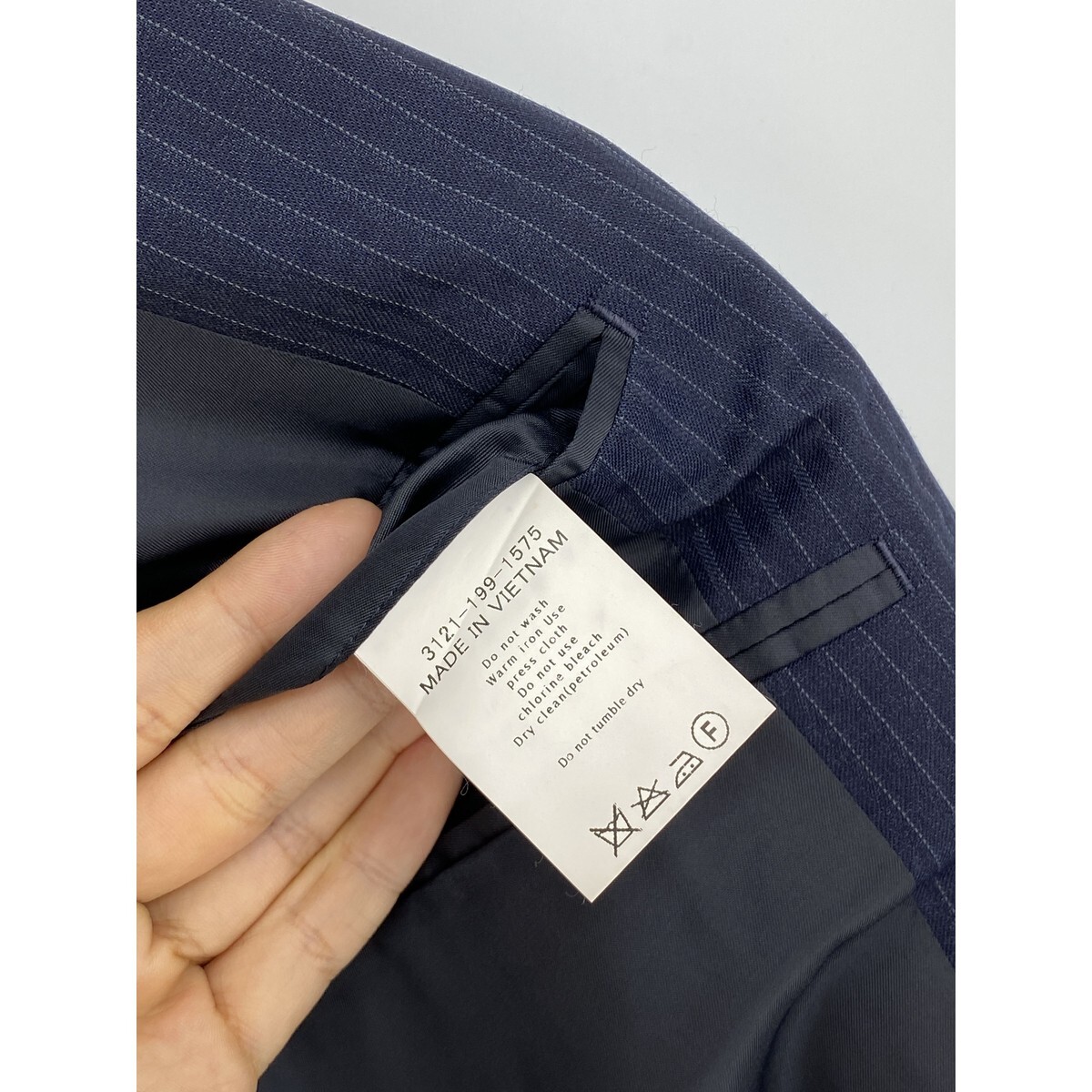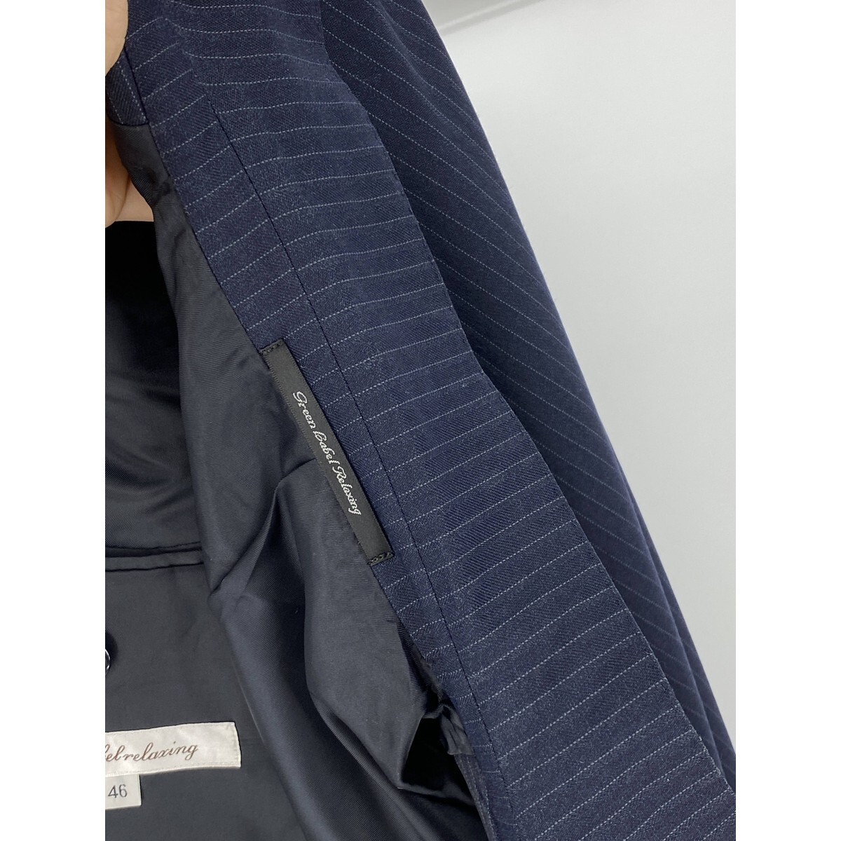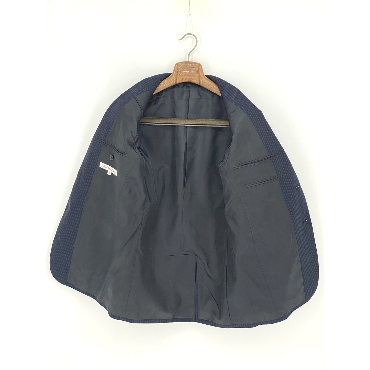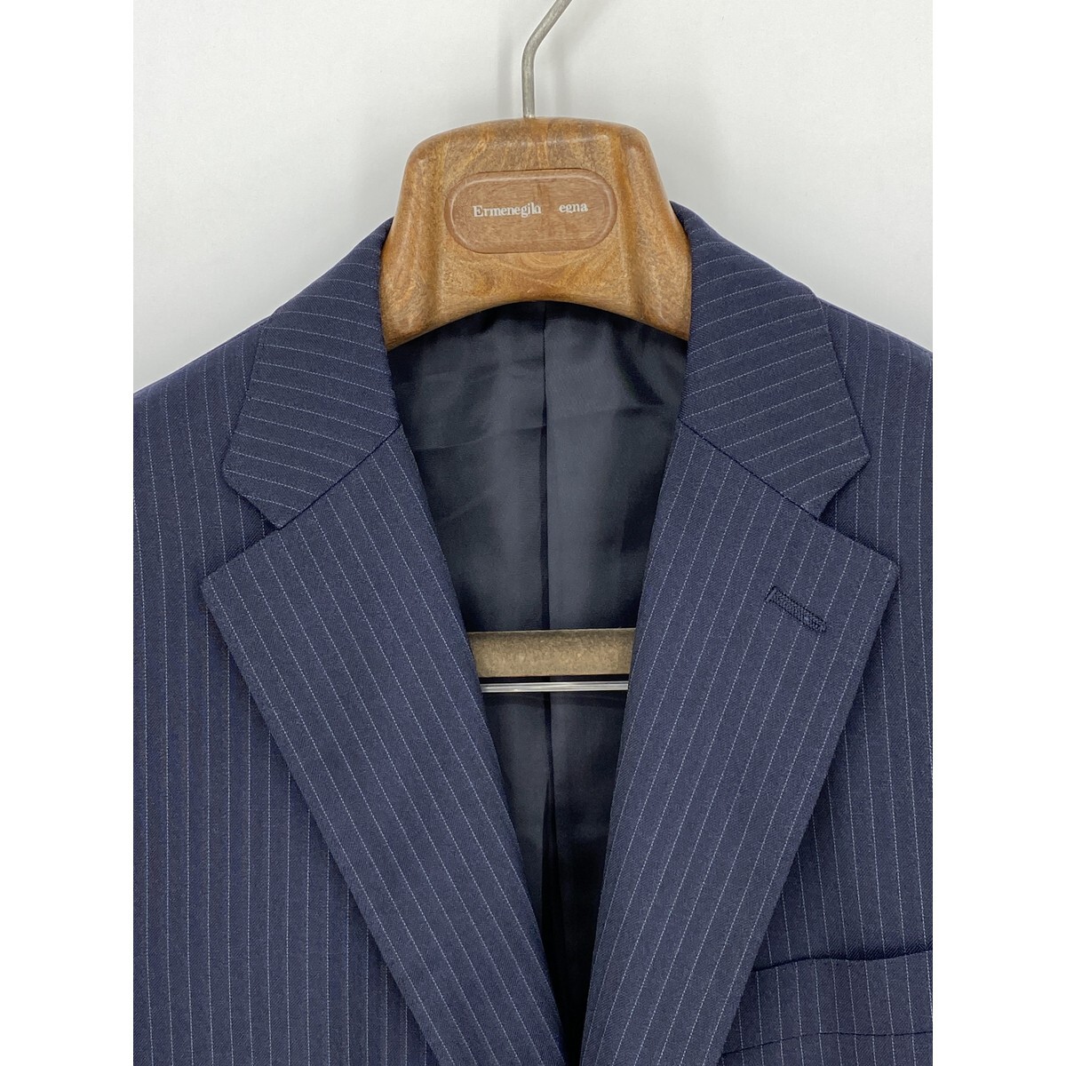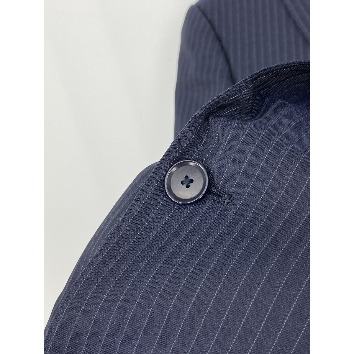 B0620/極美品 総裏 UNITED ARROWS ユナイテッドアローズ ウール ストライプ テーラード シングル2Bジャケット46 M 濃紺 メンズ スーツ用