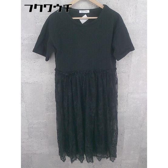 ◇ AZUL BY MOUSSY アズールバイマウジー レース 切替 半袖 ロング ワンピース ブラック レディース