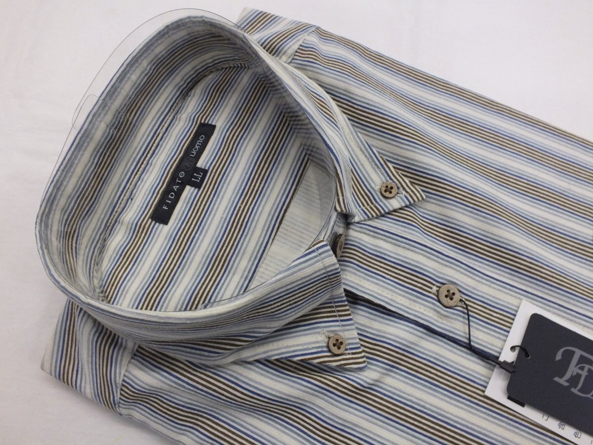 アダルトのどんなコーディネートにも溶け込み、着こなしの幅も広がるオシャレなシャツ。 G-STAGEならではの素材使い、風合い仕上がり状態、きっと満足できるものと思われます。 衿型:ボタンダウン サイズ:LL寸 色:ベージュ/グレー系縞 素材:綿100% 縫製:MADE IN CHINA 詳細な寸法 M寸:衿廻り40.5㎝・裄丈83.5㎝・肩幅46㎝・胸囲112㎝・胴囲108㎝・裾囲112㎝・着丈76㎝ L寸:衿廻り42.5㎝・裄丈85.5㎝・肩幅48㎝・胸囲116㎝・胴囲112㎝・裾囲116㎝・着丈78㎝ LL寸:衿廻り44.5㎝・裄丈87.5㎝・肩幅50㎝・胸囲120㎝・胴囲116㎝・裾囲120㎝・着丈80㎝ | ||||