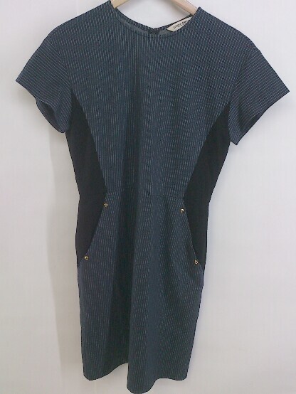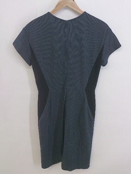 ◇ LIMITED EDITION VIVAYOU ピンストライプ フレンチスリーブ 膝丈 ワンピース サイズM ネイビー レディース P