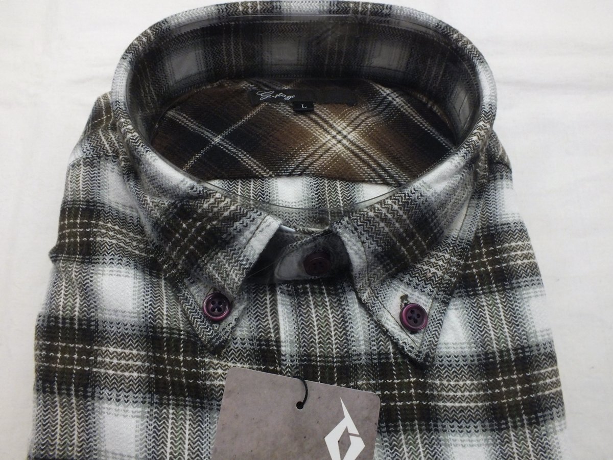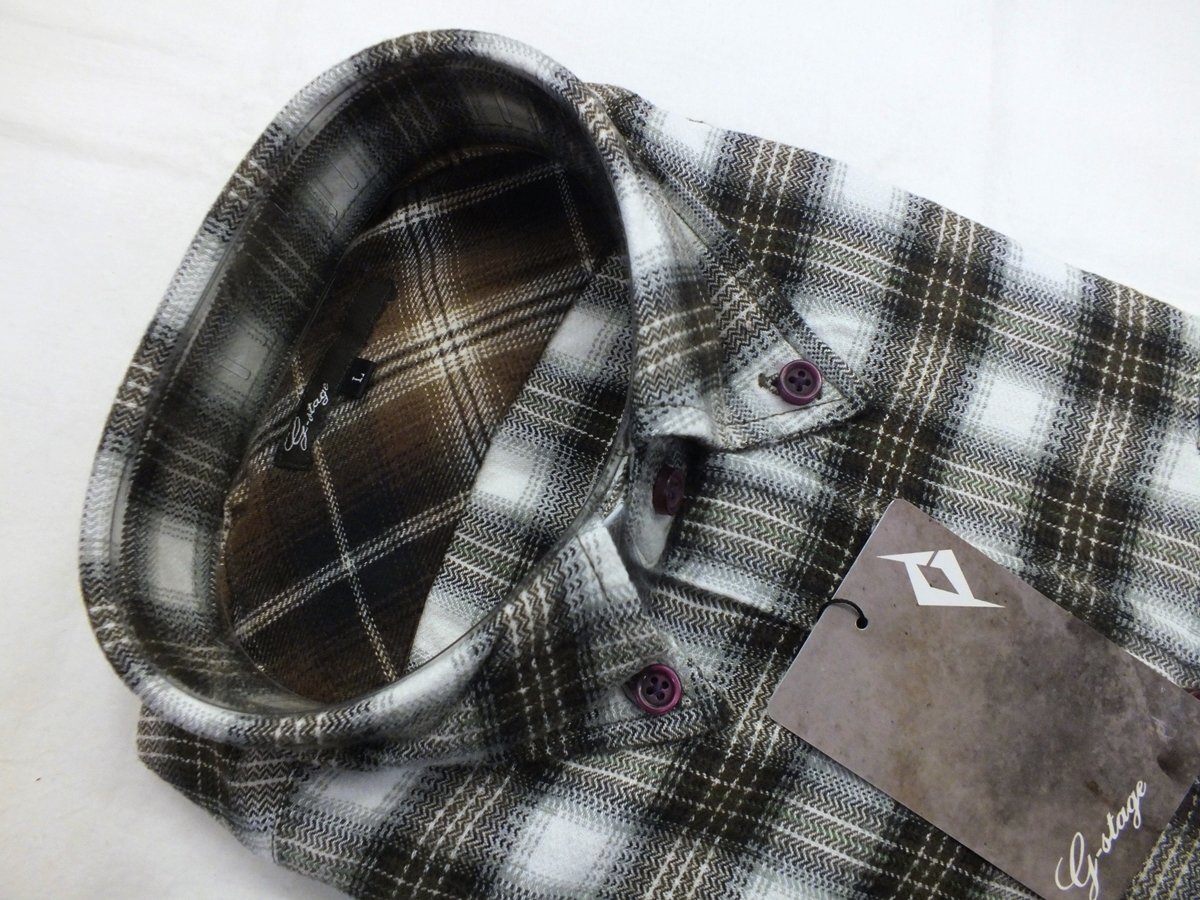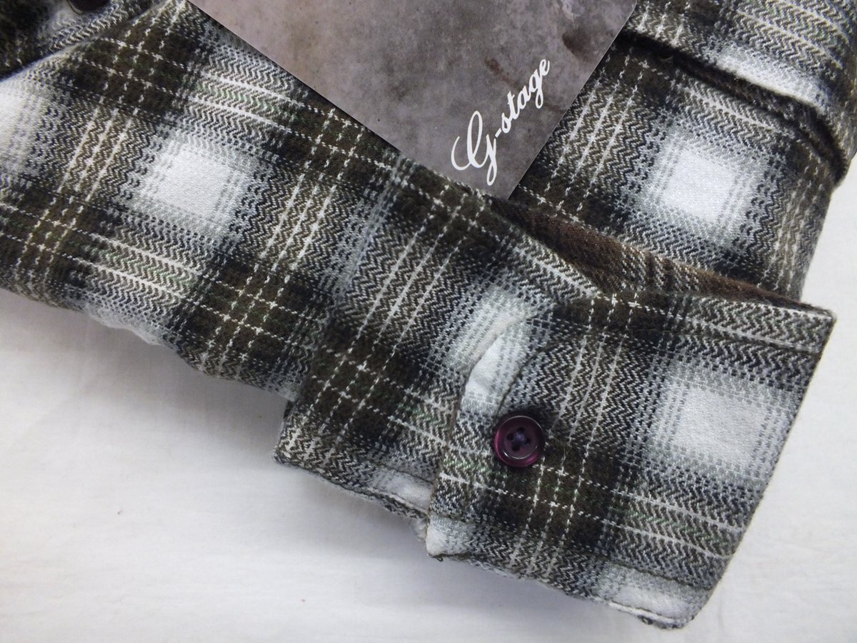 アダルトのどんなコーディネートにも溶け込み、着こなしの幅も広がるオシャレなシャツ。 G-STAGEならではの素材使い、風合い仕上がり状態、きっと満足できるものと思われます。 衿型:ボタンダウン サイズ:L寸 カラー:ホワイト地にグリーン系とブラウン系の格子柄 素材:綿100% ネルシャツ 縫製:MADE IN INDIA 詳細な寸法 M寸:襟廻り40㎝・裄丈82㎝・肩幅42㎝・胸囲112㎝・胴囲104㎝・着丈76㎝ L寸:襟廻り42㎝・裄丈84㎝・肩幅44㎝・胸囲116㎝・胴囲108㎝・着丈78㎝ LL寸;襟廻り44㎝・裄丈86㎝・肩幅46㎝・胸囲120㎝・胴囲116㎝・着丈80㎝ | ||||
