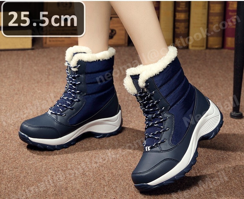 レディース スノーシューズ 【968】 ネイビー 25.5cm ムートンブーツ スニーカー ウィンターブーツ 裏起毛 防水 防寒 防滑 冬用靴 綿靴