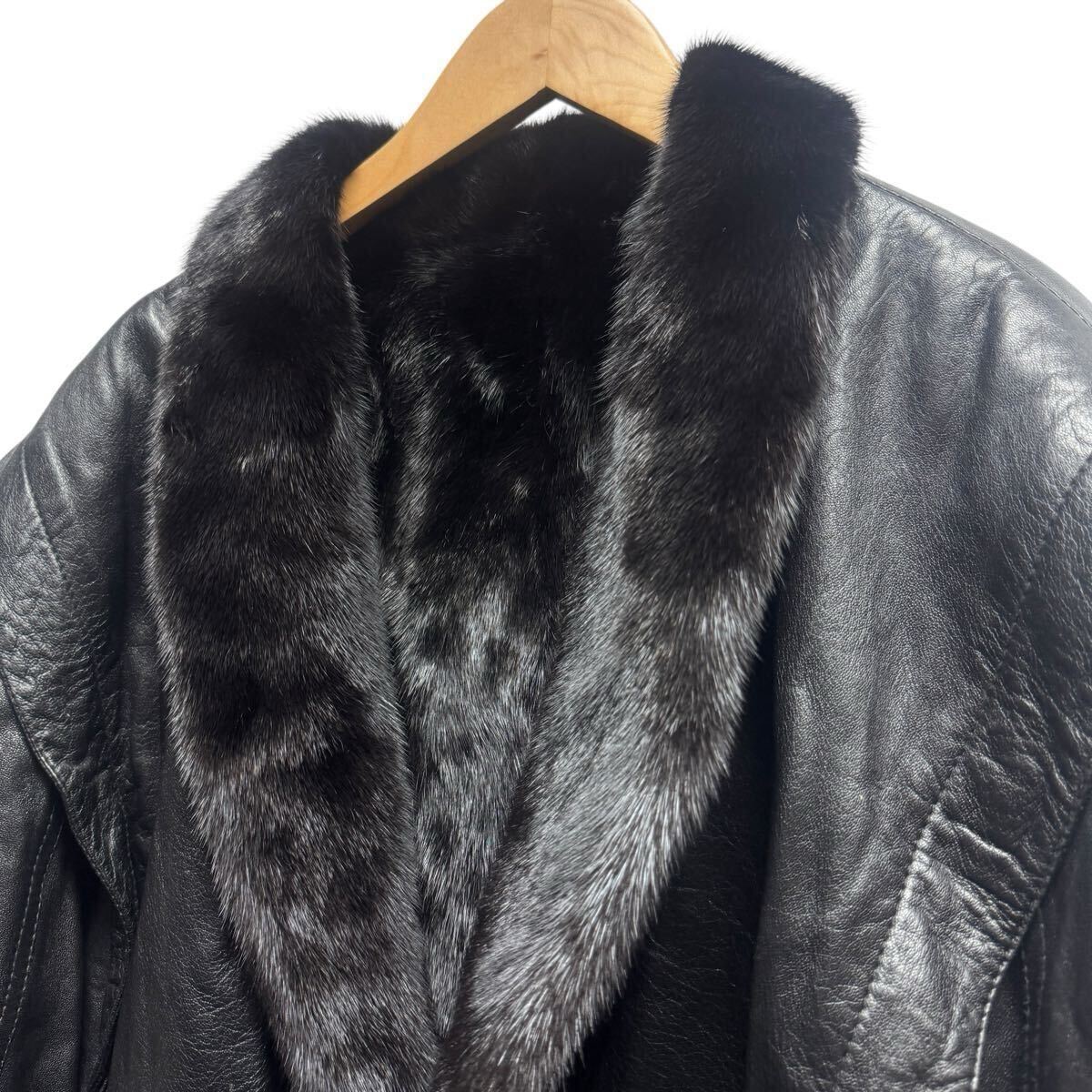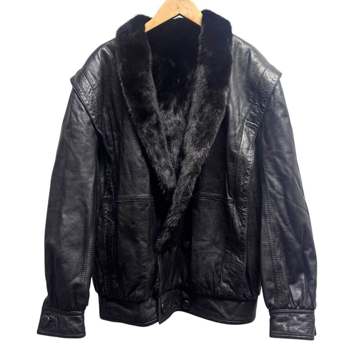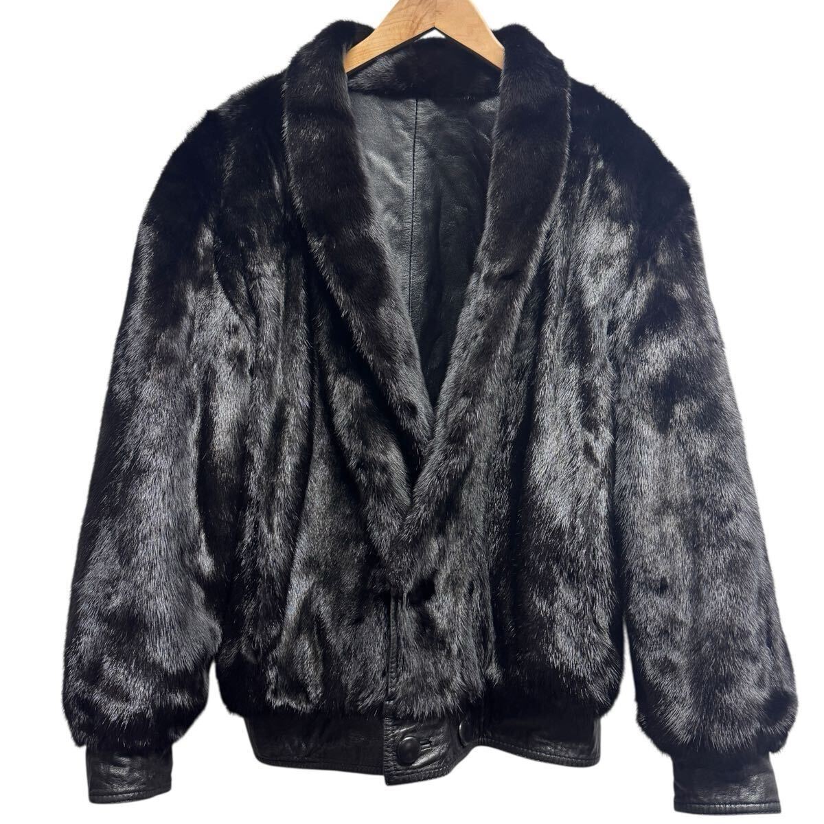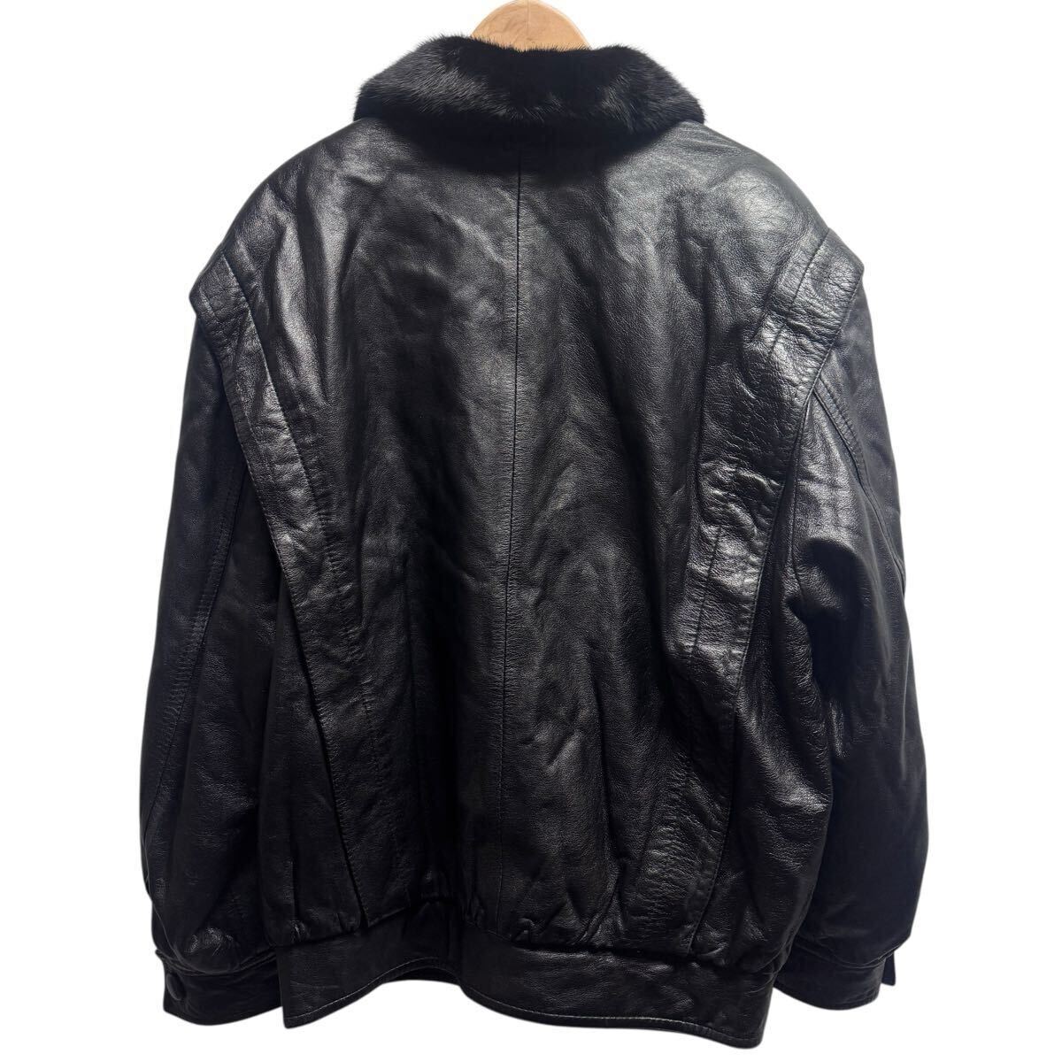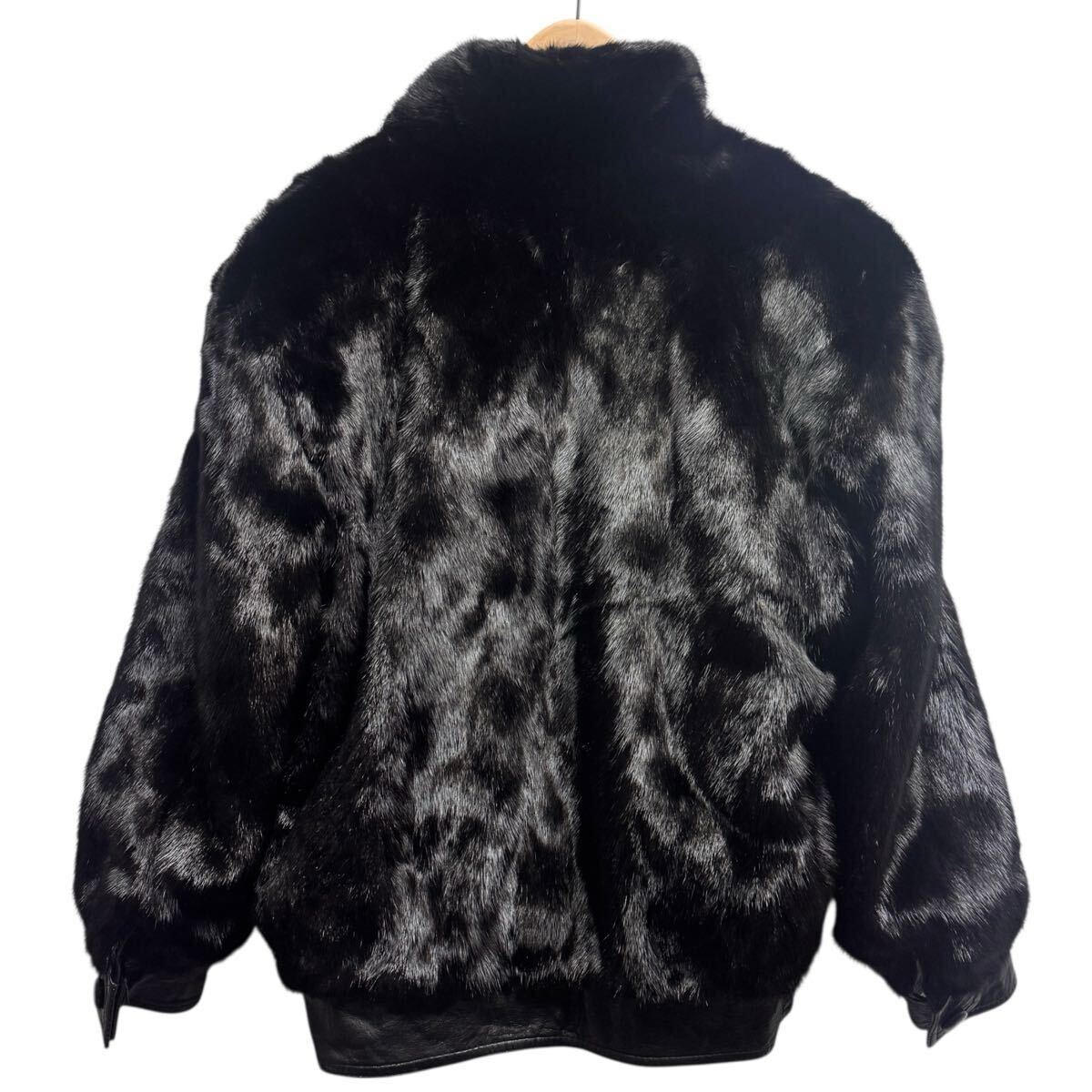 最高級 MINK ミンク リバーシブル レザー 毛皮 ジャケット ブルゾン コート ブラック メンズ Lサイズ 紳士服 リアルファー