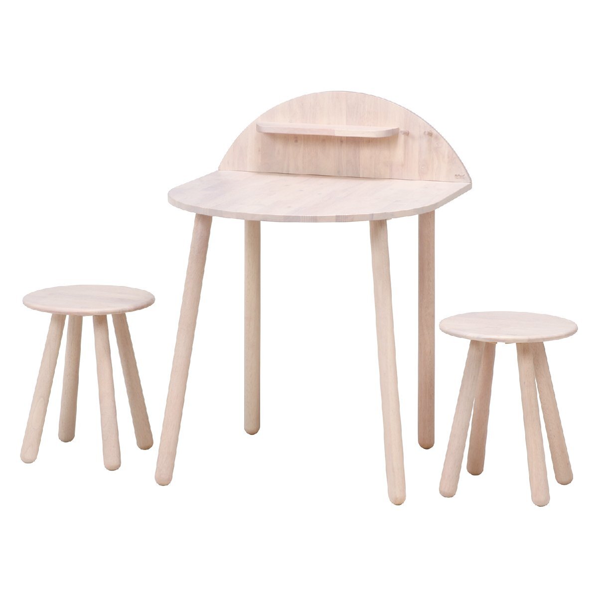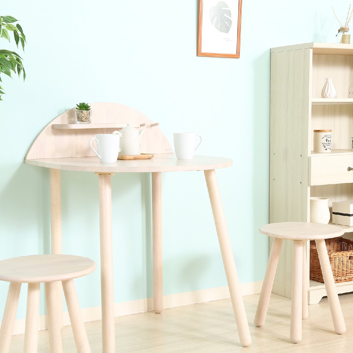 | 備 考 | ■スツール2脚付きの可愛いセットです。 ■棚板付きなので小物やスマホを置けます。 ■壁につけてスペース利用できます。 |