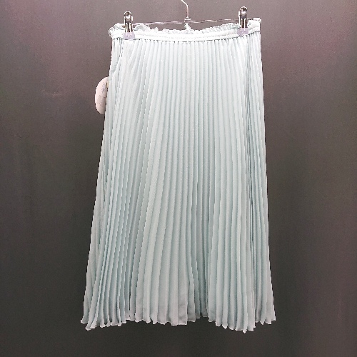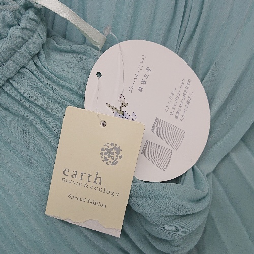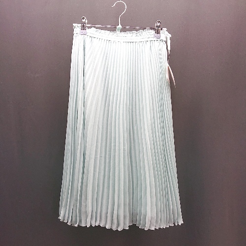 ◇ ◎ ●未使用● earth music&ecology ウエストゴム 綺麗め プリーツ 膝丈 フレア スカート サイズF ミント レディース E