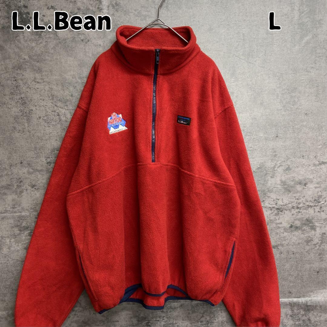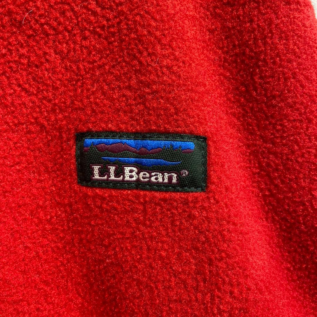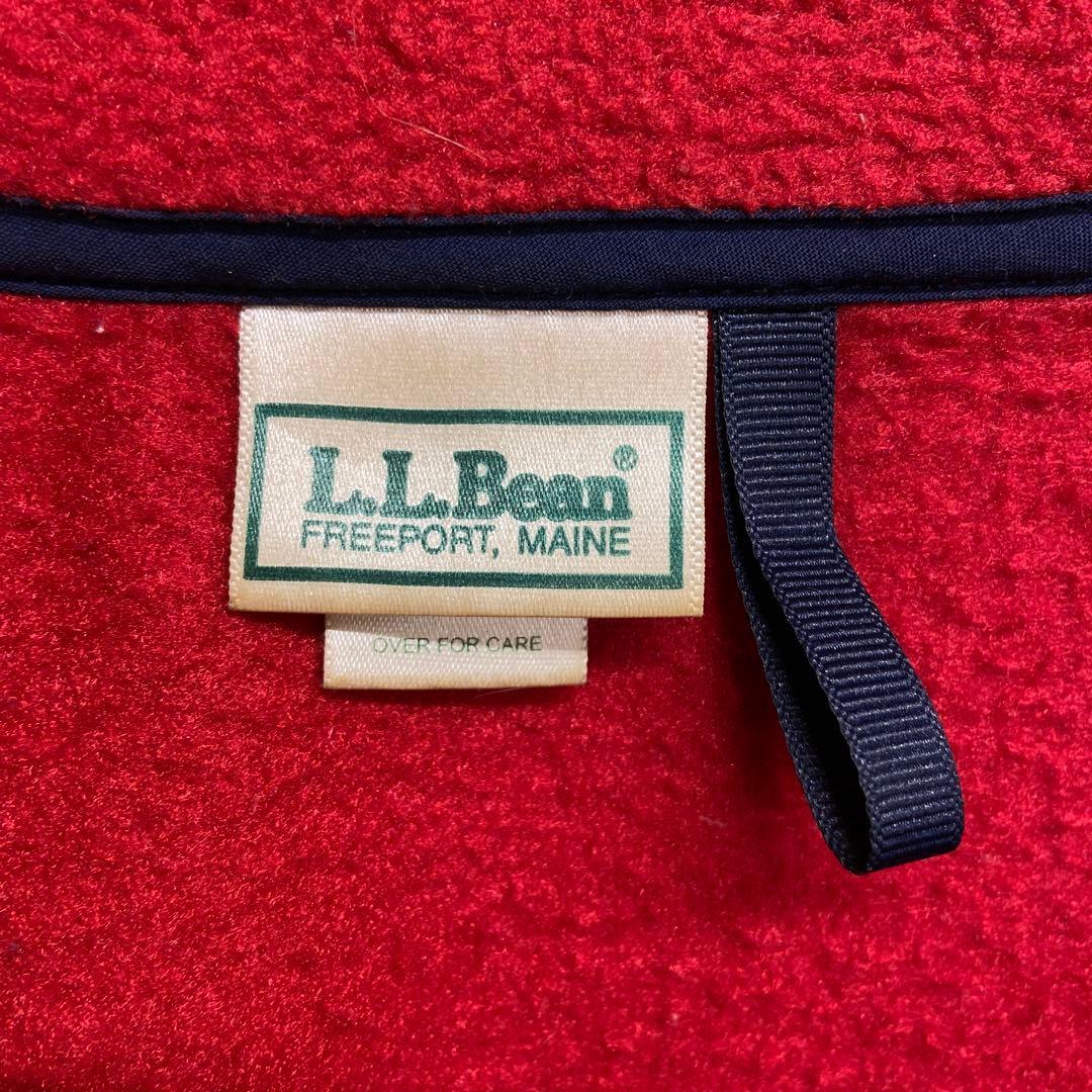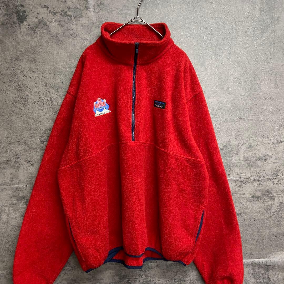 鮮やかなレッドに胸元のワッペン刺繍が映えるエルエルビーンのフリーストップス。軽く暖かい素材で着心地がよく、人気のUSA古着アイテムです。カジュアルにもアウトドアにも使える万能な一枚。