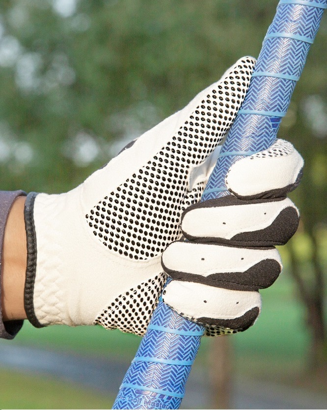 手のひらに滑り止め粒子を全面配置し、汗をかいてもグリップが安定します。