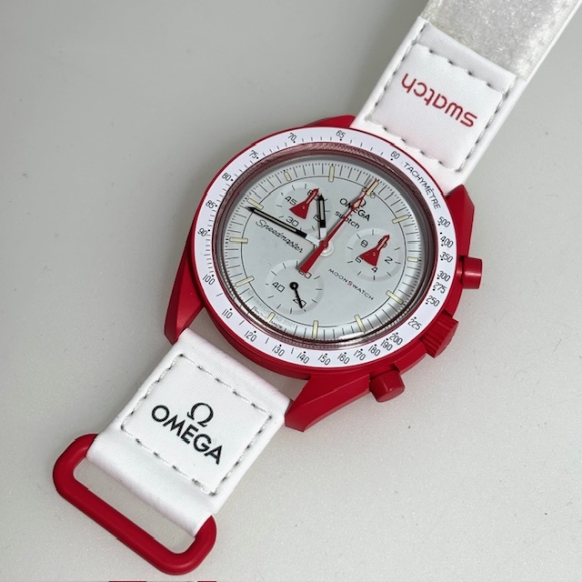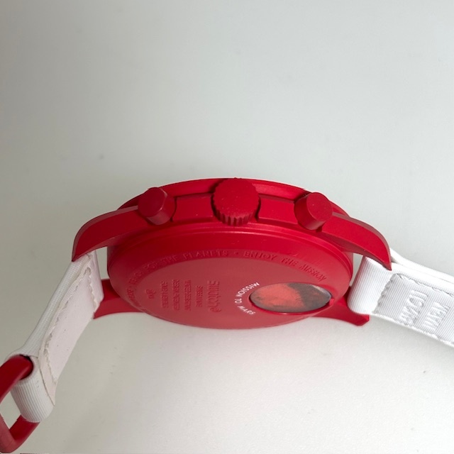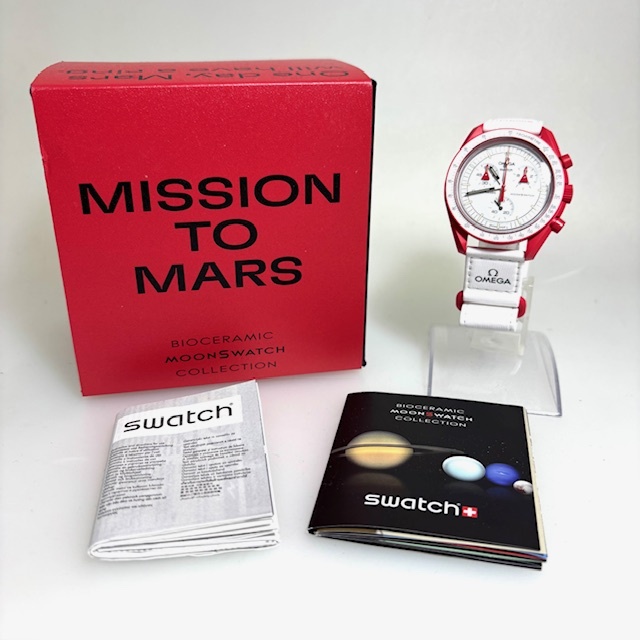 OMEGA swatch omega SWATCH オメガ スウォッチ ムーンウォッチ マーズ 箱 取説 MISSION TO MARS ブランド:OMEGA swatch omega SWATCH オメガ スウォッチ 商品名:スピードマスター サイズ(約):ケース幅42mm カラー:ホワイト レッド 白 赤 素材:セラミック ムーブメント:クォーツ 付属品:箱 取扱説明書 状態 ほぼ使用感はなく、ベルトなどもとても綺麗な状態です。出品時に動作確認済みです。 写真と実物では色味や質感、劣化など多少異なる場合があります。完璧な状態を求められる方・神経質な方のご購入はご遠慮ください。 保管状況は傷がないように万全の保管をしていますが、保管によりお写真では伝わりにくい傷や汚れがあるかもしれませんので予めご了承くださいませ。 申し訳ございませんが、すり替え防止の為、返品はご遠慮頂きます様お願い致します。 BU7254