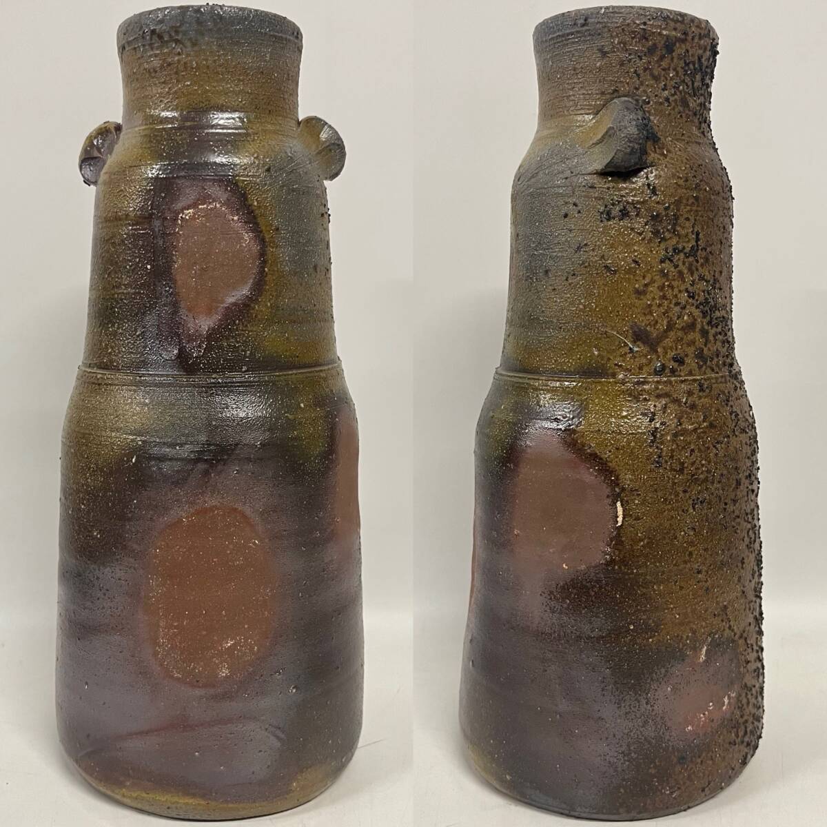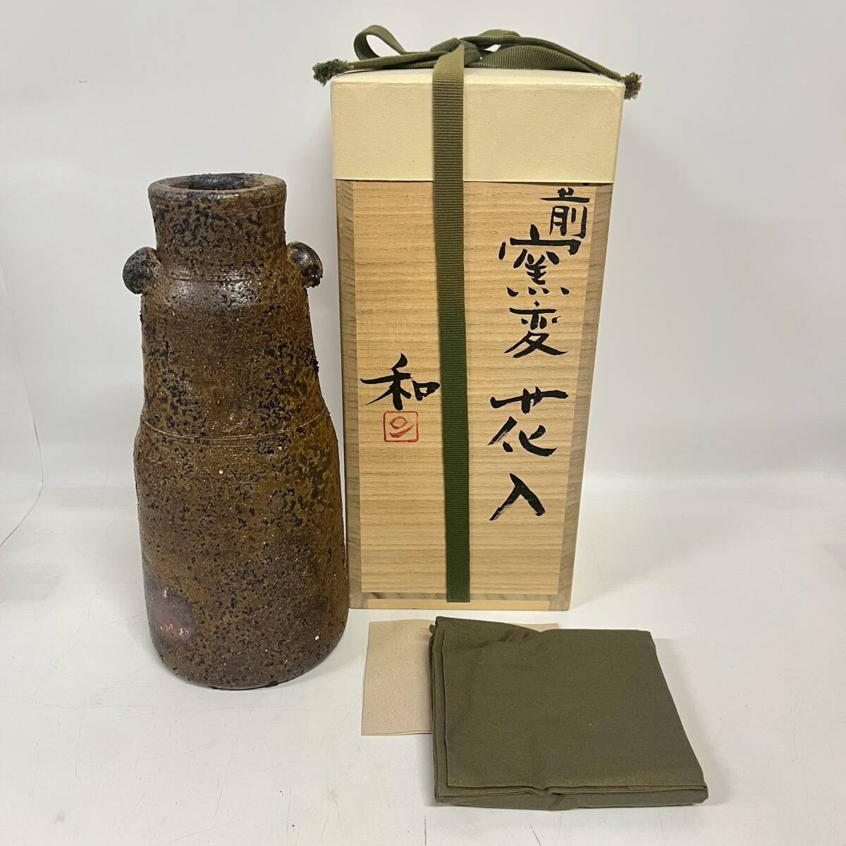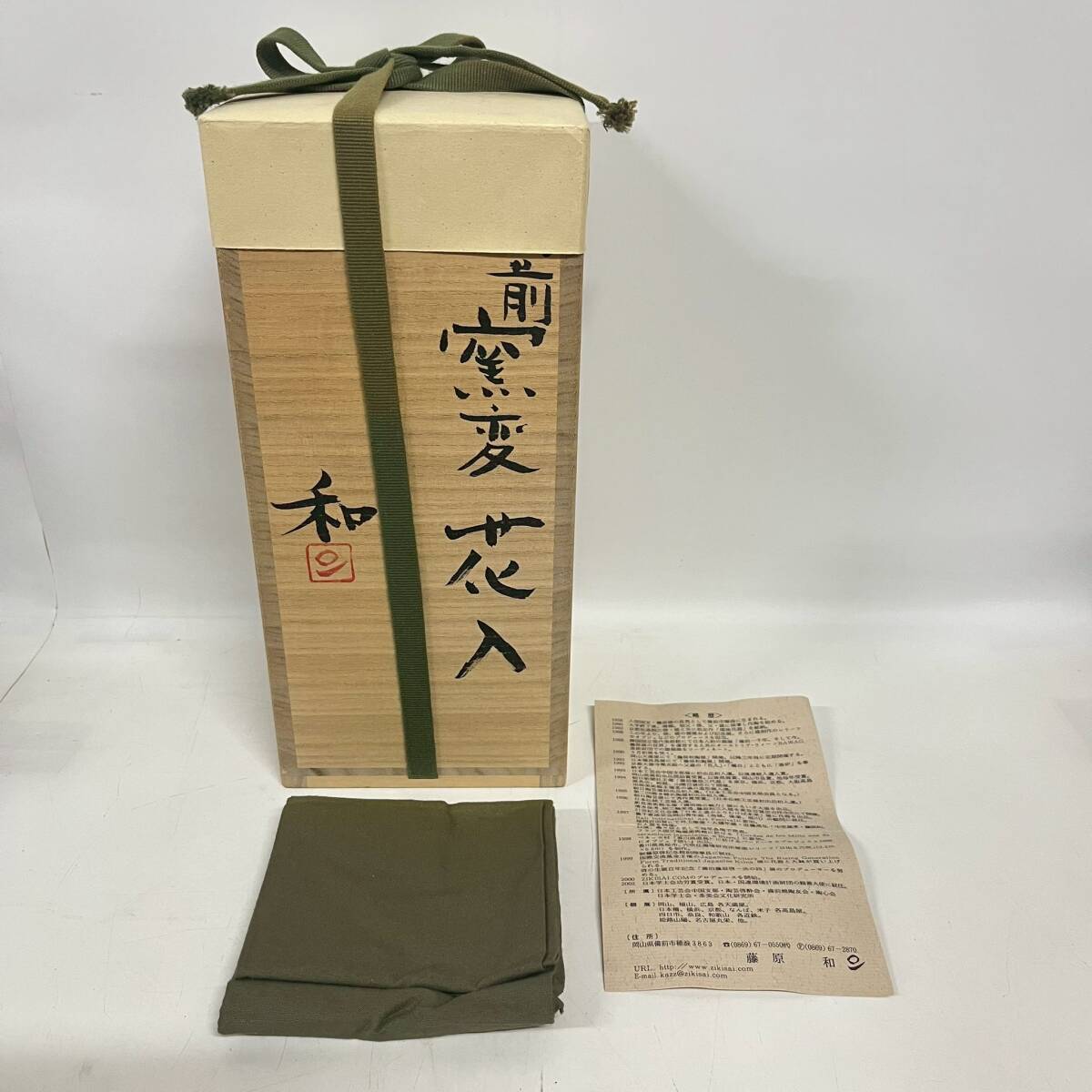 商品:1円~【コレクター放出品】藤原和 作 備前焼 窯変 花入 花器 陶磁器 工芸品 美術品 共箱 共布 栞付き 高さ約25cm 口径約4cm K101877