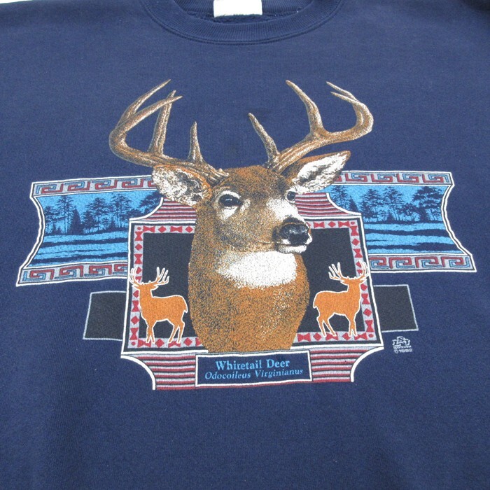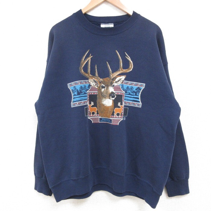 【商品名】 XL★古着 リー Lee 長袖 スウェット メンズ 90年代 90s シカ クルーネック USA製 紺