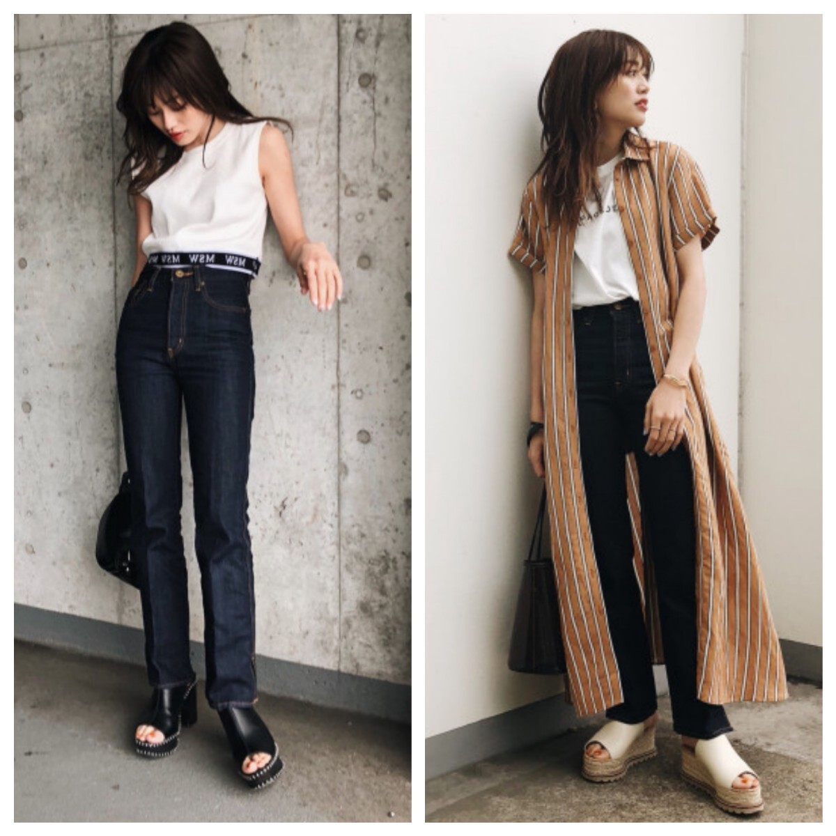 【O/W CENTER PRESS JEANS】センタープレスが太ももまわりをスッキリと見せてくれ、ややフレアのシルエットも足長効果抜群。・ジップフライ。