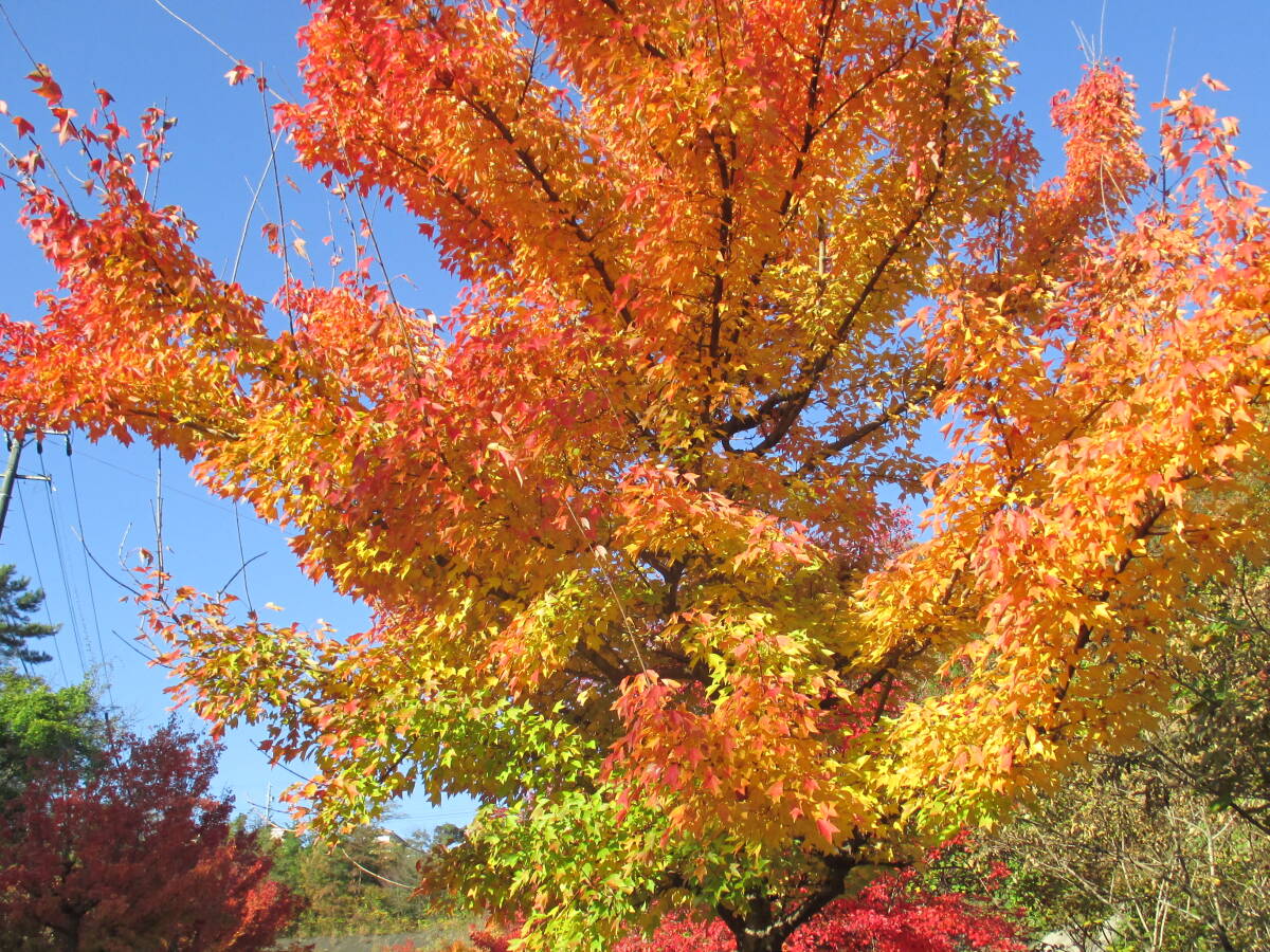 花散里カエデの秋の紅葉はカラフルでとても綺麗です。