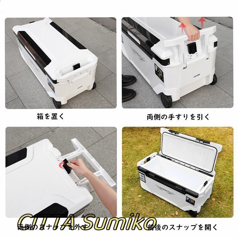 商品説明 商品説明 ●軽量・コンパクトなポータブルサイズ。●PPの断熱材採用、保温効果が向上です。●座れる頑丈マッスルボディ●サイドハンドルと静音キャスター付きで持ち運び楽々●簡単に開閉可能な水栓付き【商品の説明】商品状態:未使用品カラー:白&銀(1枚目の画