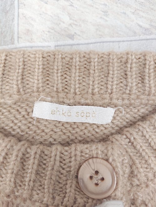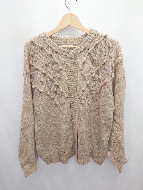 ◇ ⊇ ehka sopo エヘカ ソポ 刺? 長袖 ニット カーディガン サイズF ベージュ系 レディース E