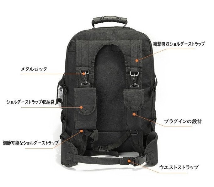 リュック バックパック 55L大容量バックパック 多機能 丈夫 頑丈 通学 登山リュック 旅行リュック 撥水 防災 ブラック(A70)