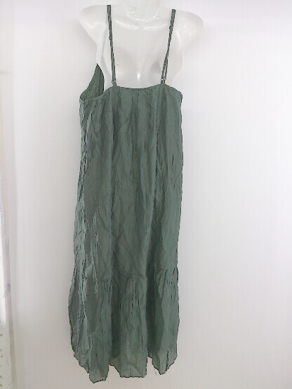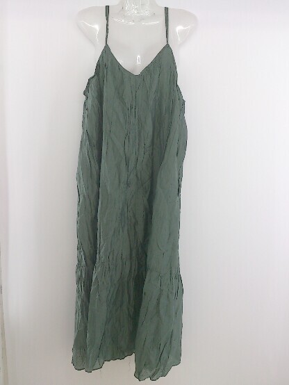 ◇ Aunt Marie's アントマリーズ しわ加工 ロング キャミソール ワンピース ダークグリーン系 レディース P