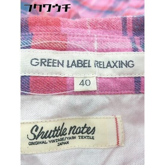 ◇ green label relaxing グリーンレーベル UNITED ARROWS チェック 長袖 シャツ サイズ40 ピンク ネイビー レディース