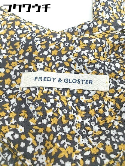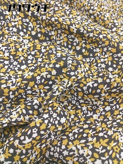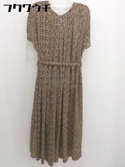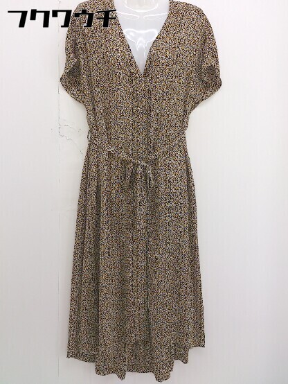 ◇ ◎ FREDY&GLOSTER ベルト付 総柄 フレンチスリーブ ロング シャツ ワンピース ブラウン マスタード レディース