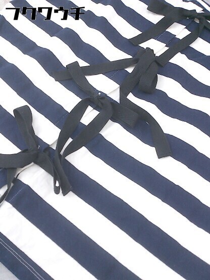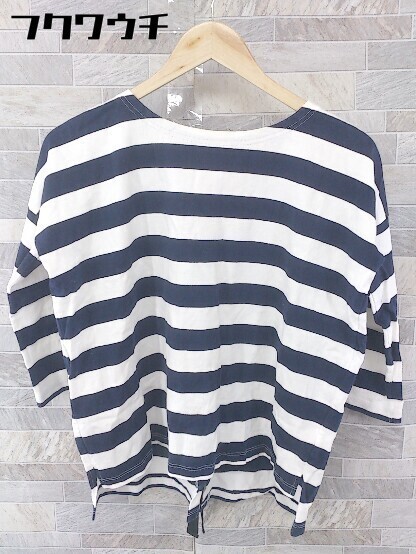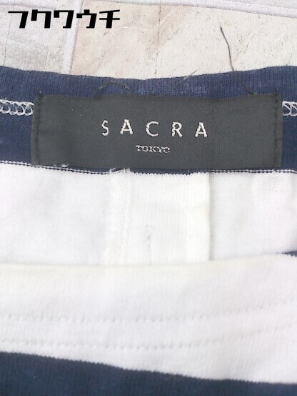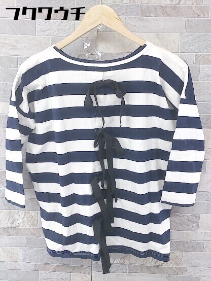 ◇ SACRA サクラ リボン ボーダー 七分袖 Tシャツ カットソー サイズ38 ネイビー ホワイト レディース