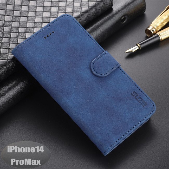 iPhone14PROMax ケース PUレザー おしゃれ スマホケース スマホカバー ブルー 耐衝撃 衝撃吸収【n276】