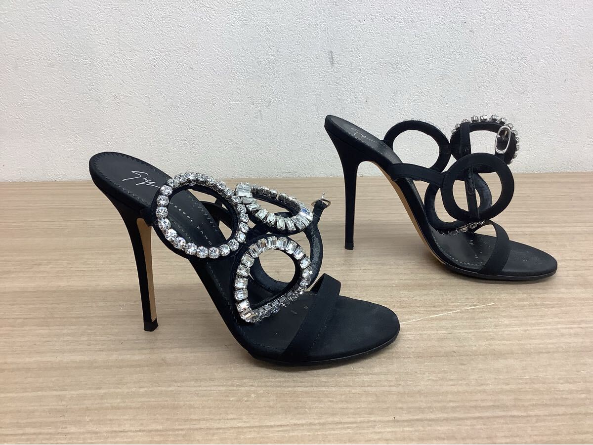 Giuseppe Zanotti 37 サンダル ミュール ヒール ブラック 黒 イタリア製 ジュゼッペザノッティ 現状品