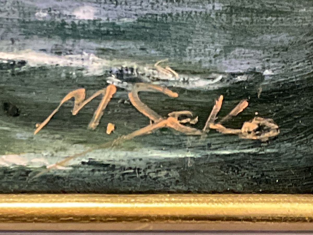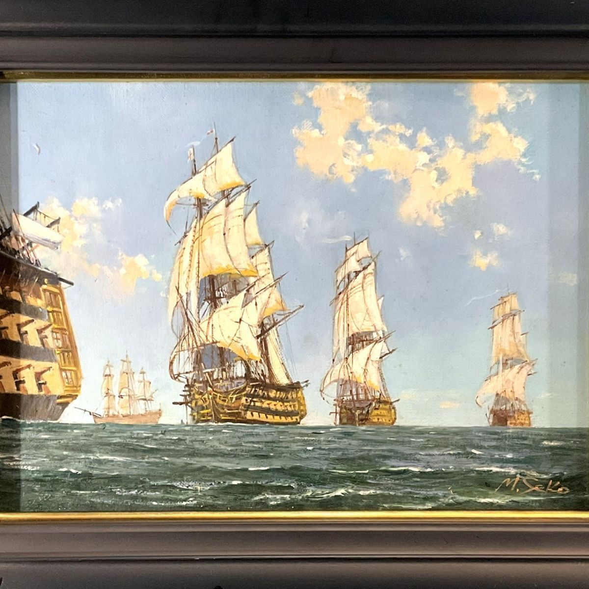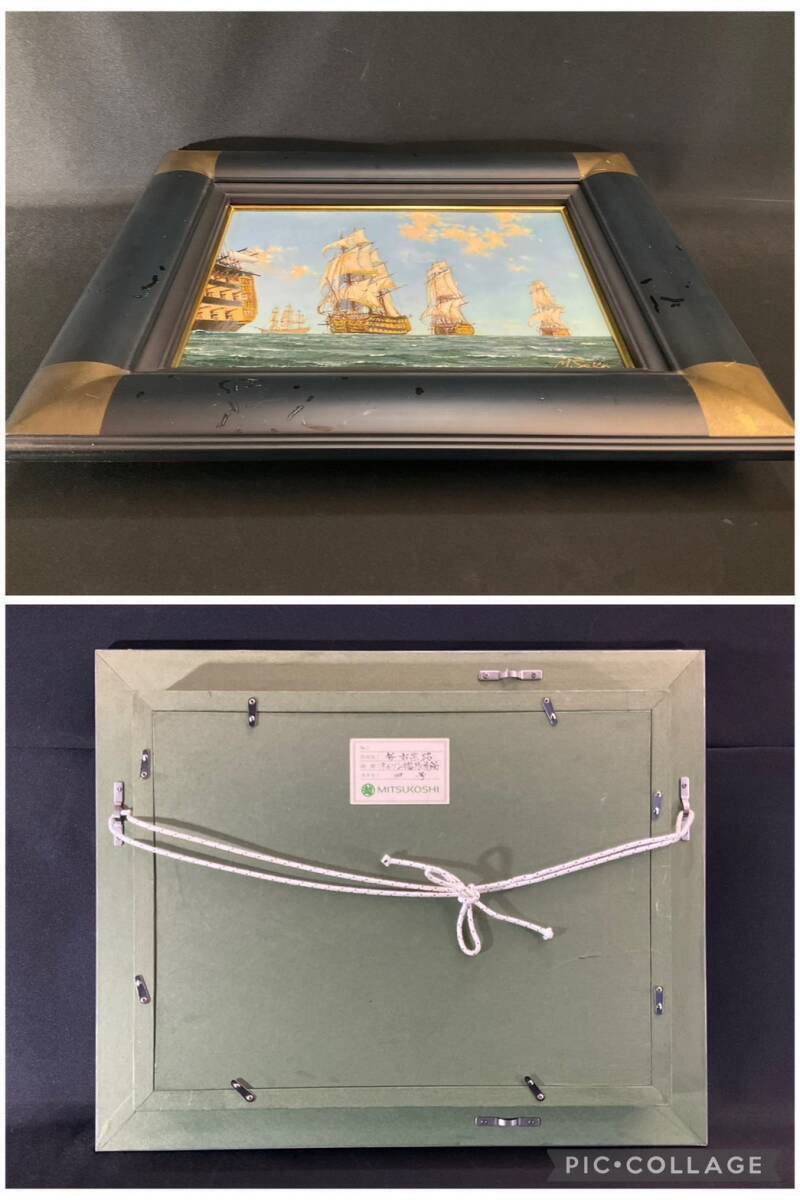 真作■油彩■勢古宗昭■『ネルソン艦隊抜錨』■海洋画重鎮 師:鈴木政輝 各地百貨店個展■額付絵画